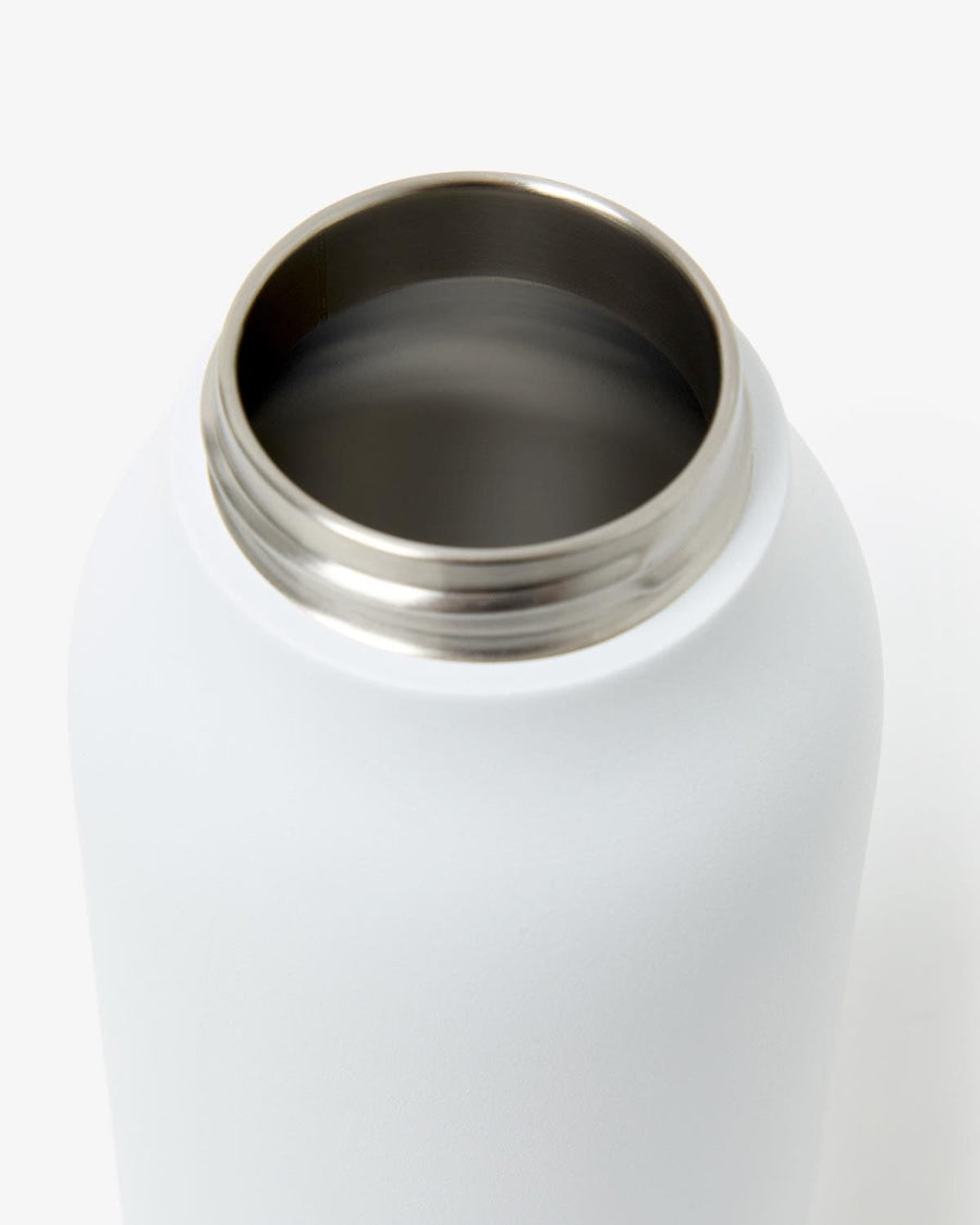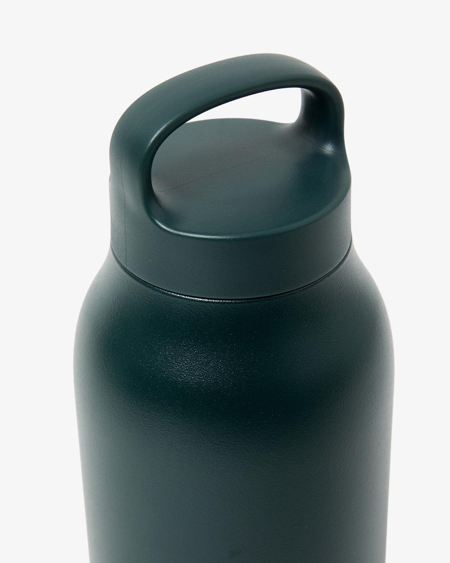 Durable, lightweight powder-coated tumbler with double-wall vacuum insulation, easy-clean polished interior, 40 mm wide mouth, and handle-equipped twist lid.
