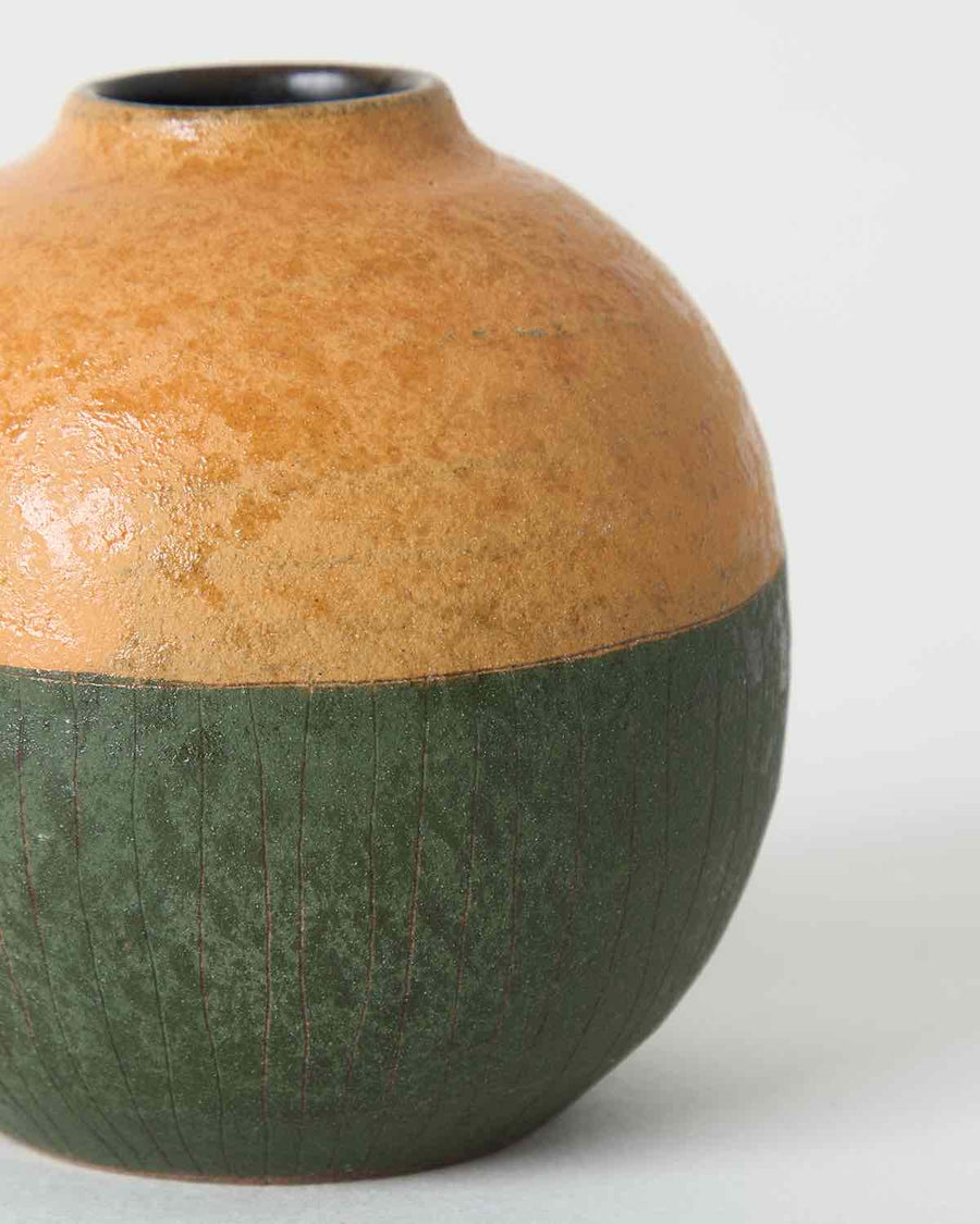This two-tone vase features contrasting textures and a gently rounded shape for a charming, cozy design.