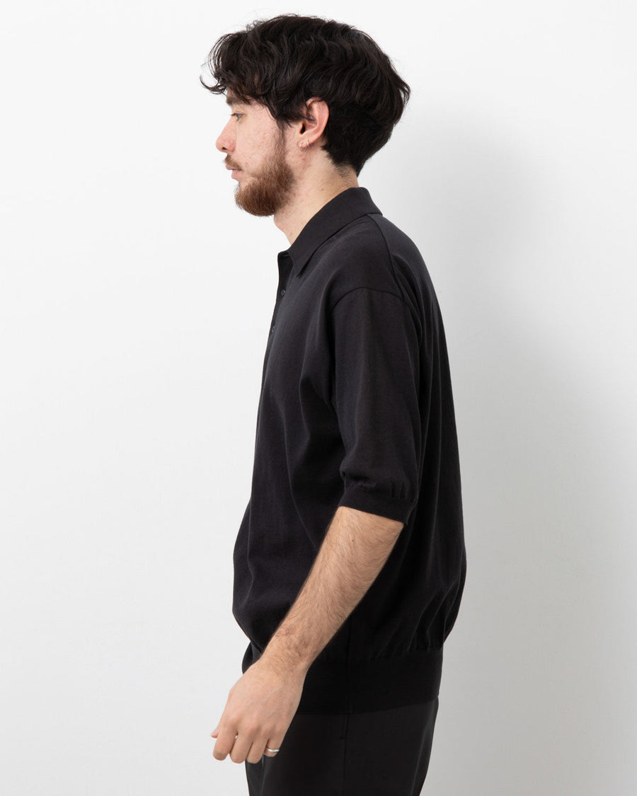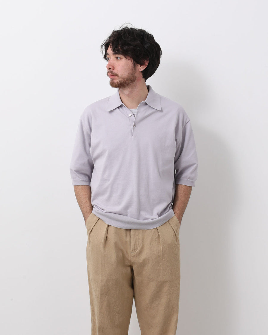A cotton knit polo shirt made from air-spun Suvin cotton, a high-grade extra-long staple cotton from India.Soft and supple with rich texture, suitable for year-round wear.