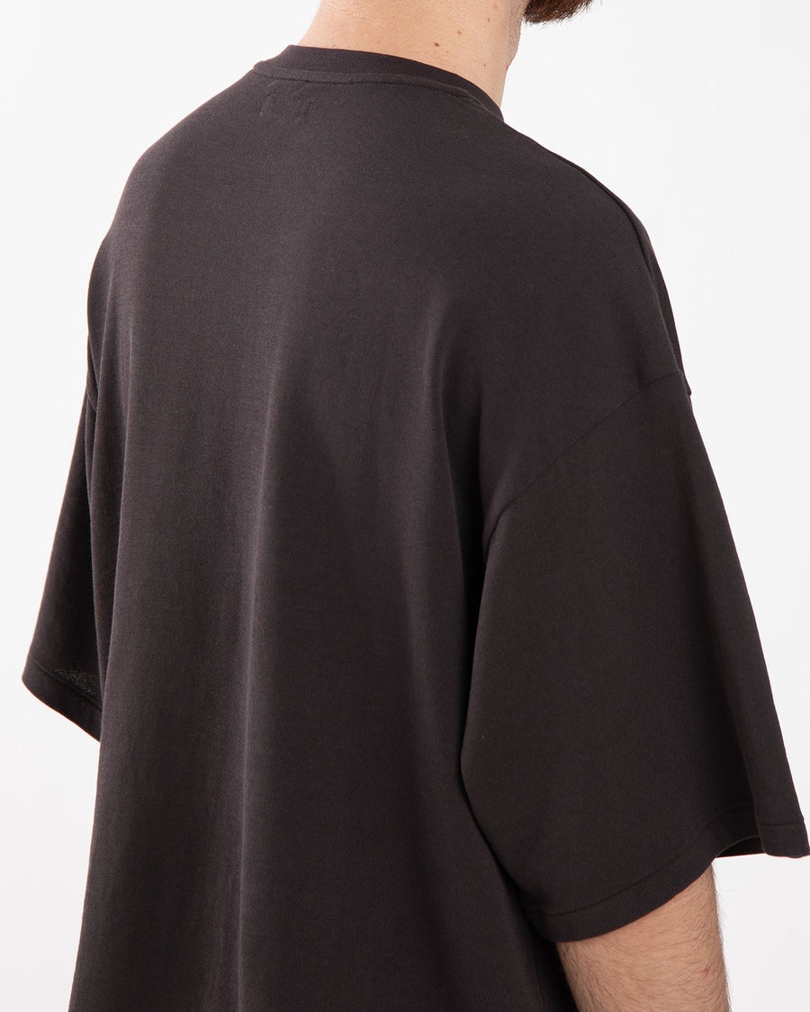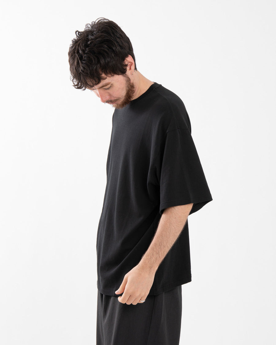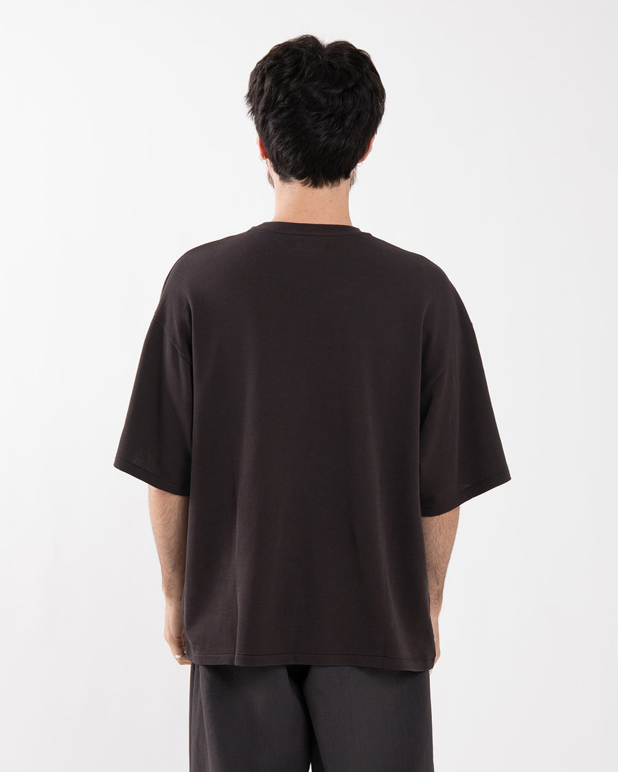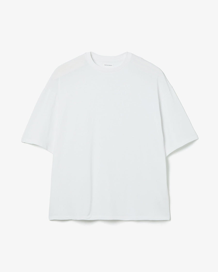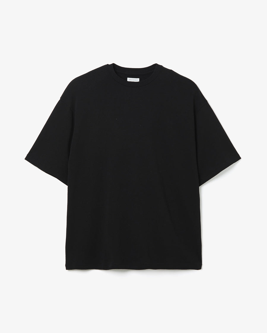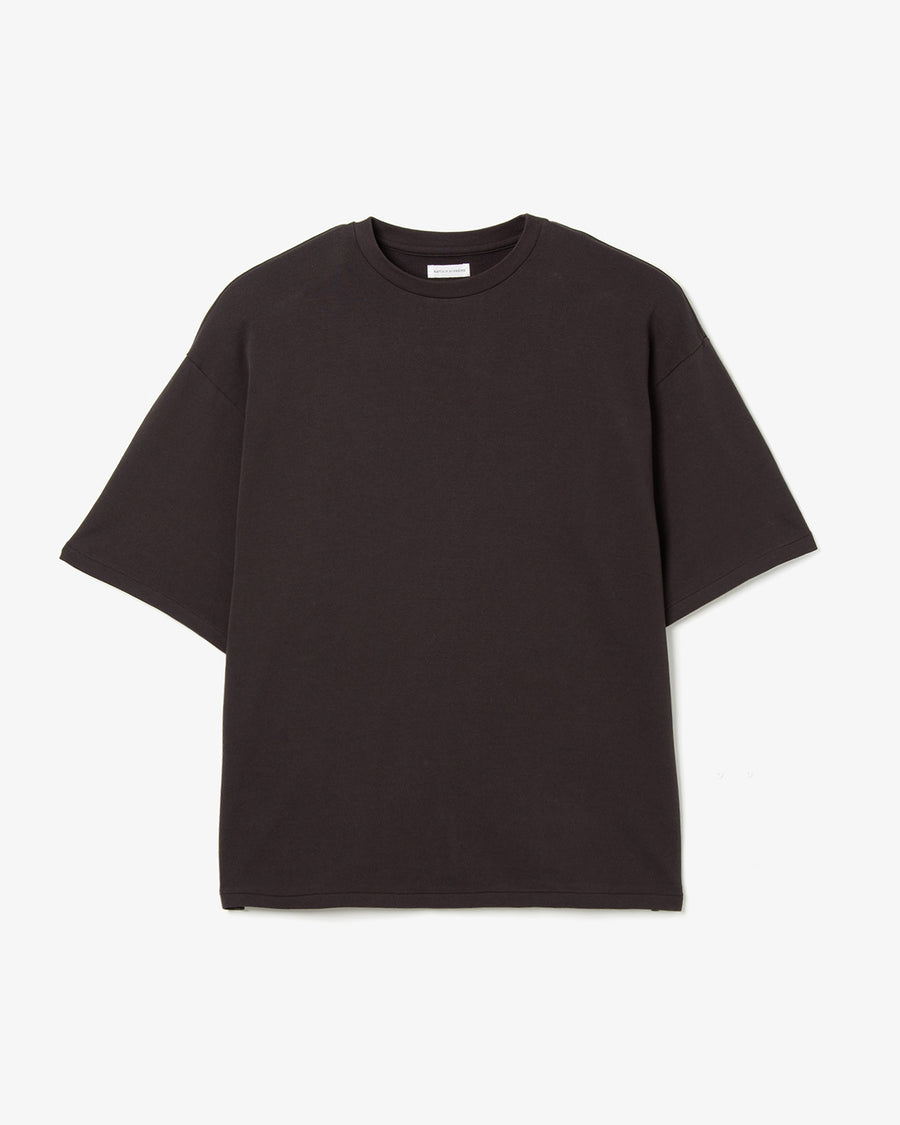 Short-sleeve T-shirt in high-gauge loopback made from twisted Suvin cotton, offering a clean surface with a dry, crisp touch and a light, breathable feel.