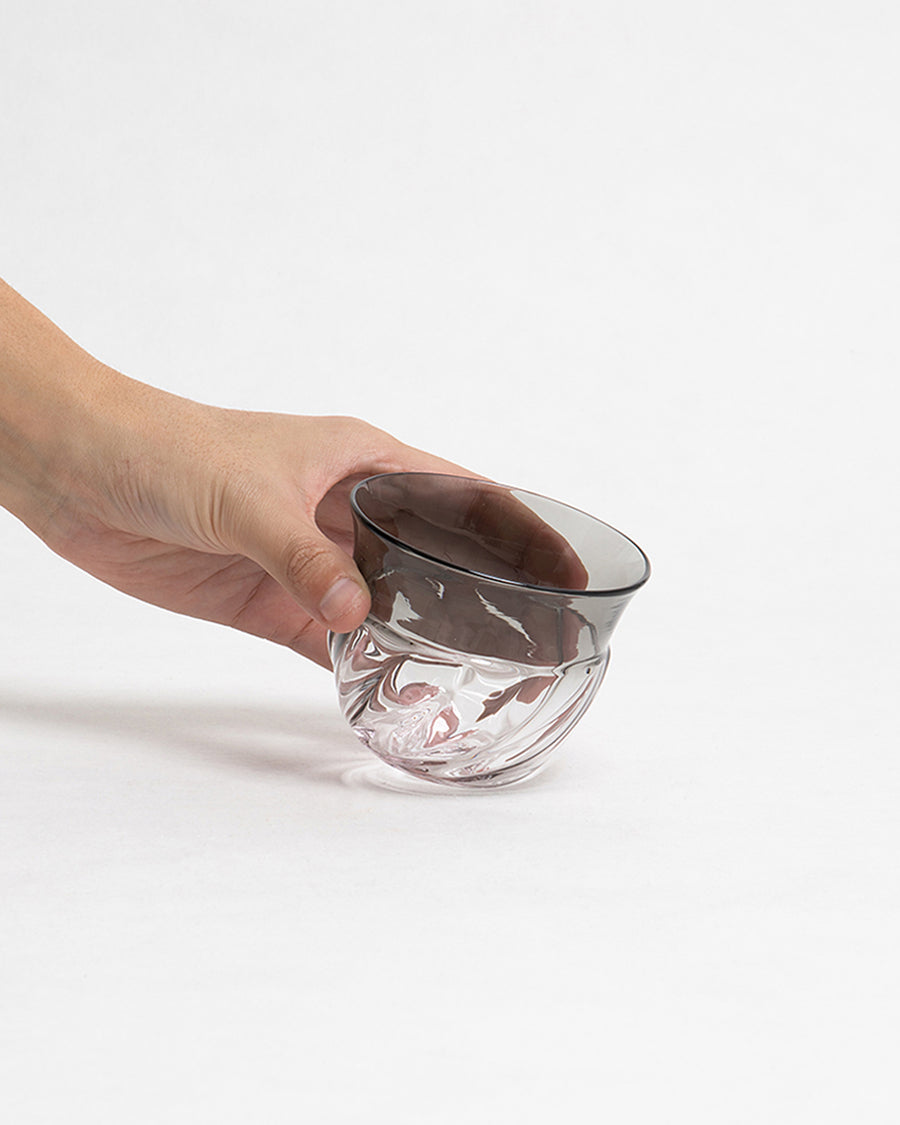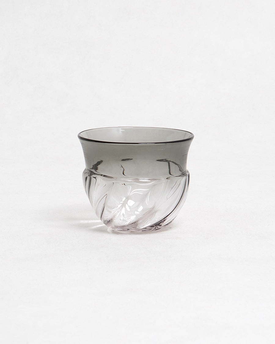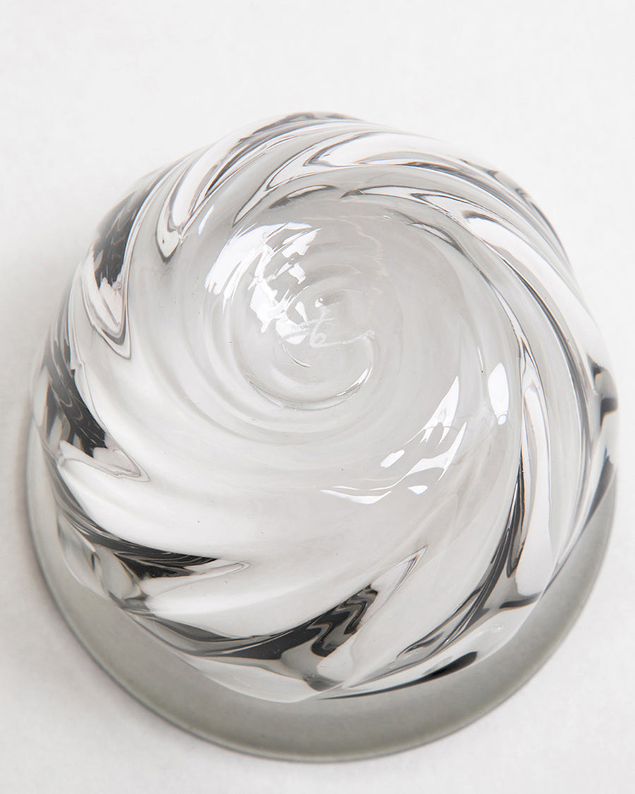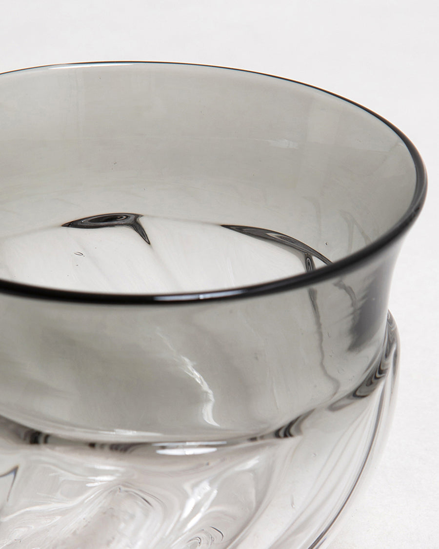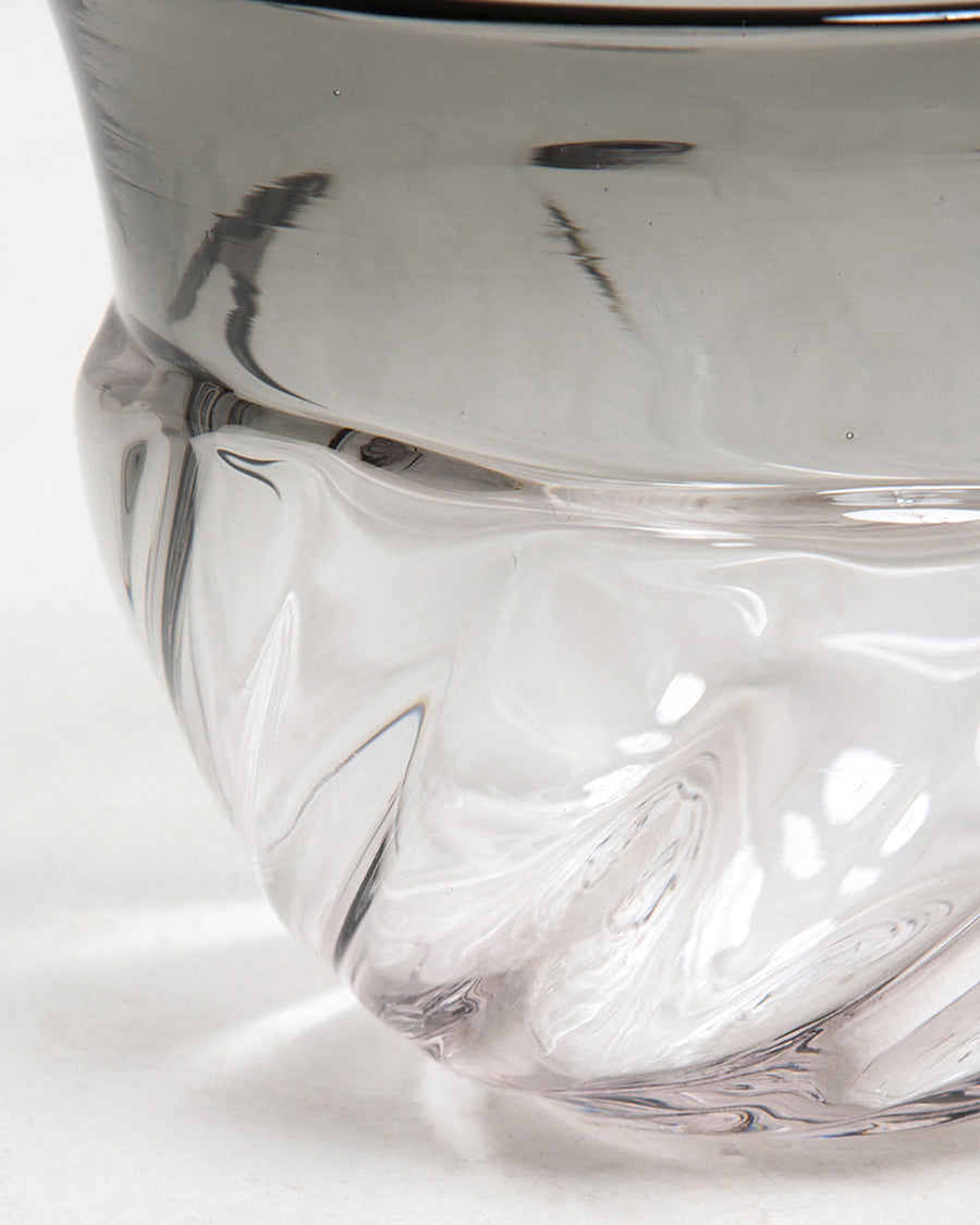 This low profile glass is crafted of a handblown, reclaimed glass with a subtle twisted detailing throughout.
