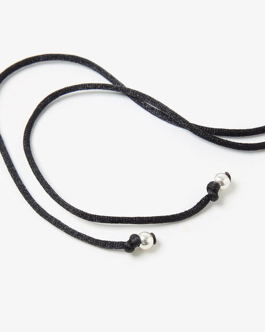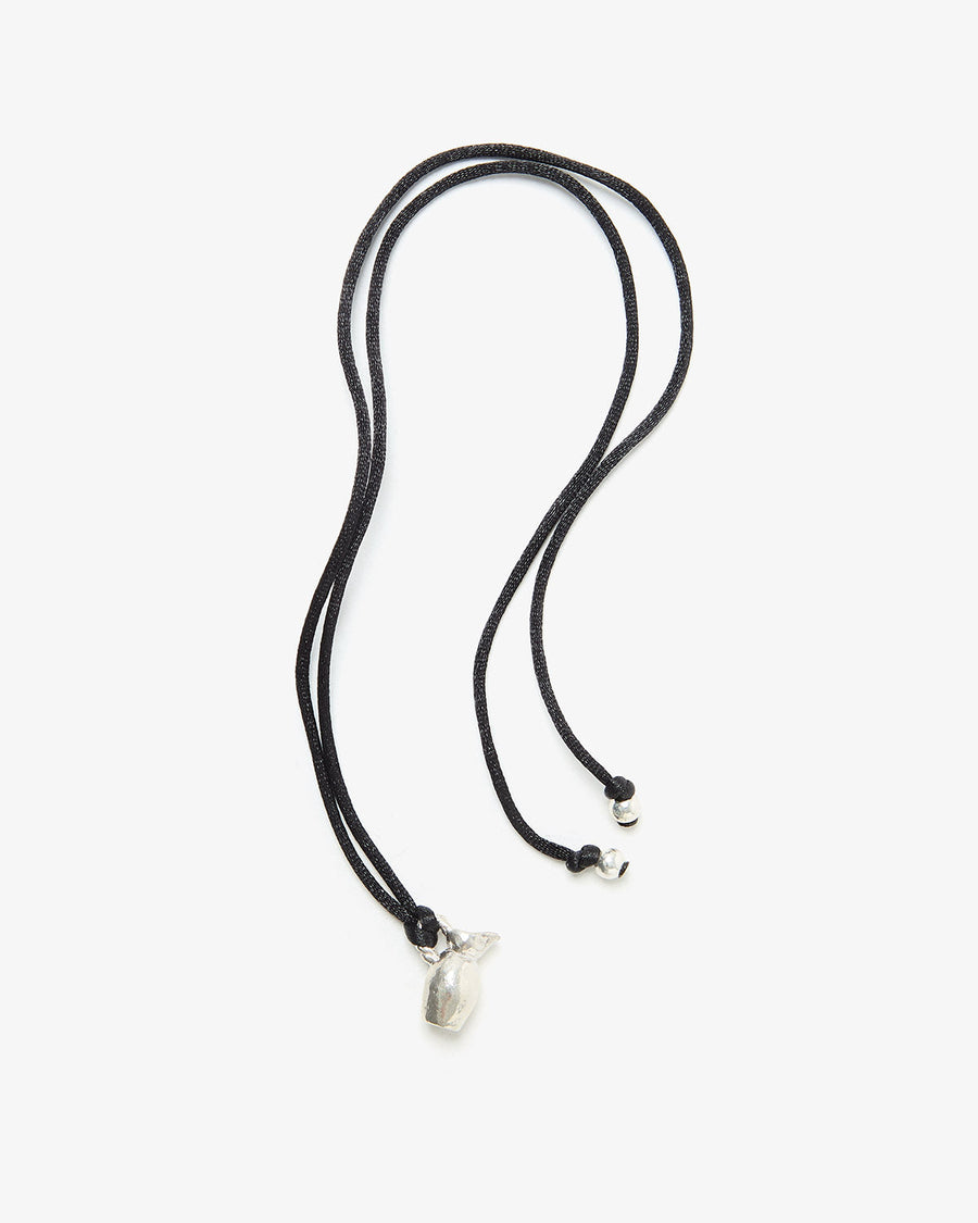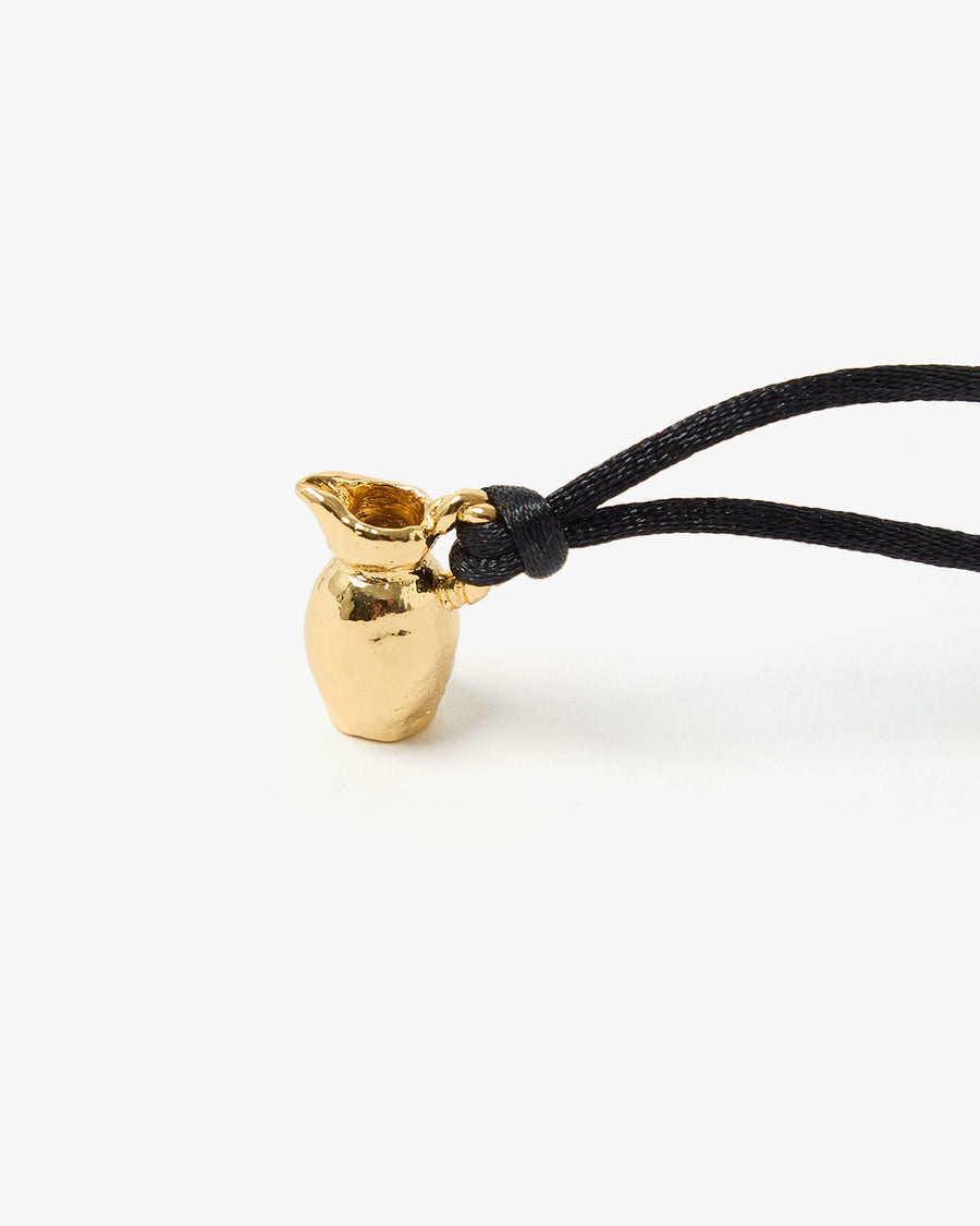 A vase-motif necklace on a black cord, inspired by ancient vessels and diverse cultures.