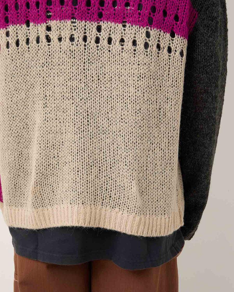 Randomly placed cut-out details on the chest and an uneven color pattern create a distinctive accent, making it an ideal piece for layered styling.