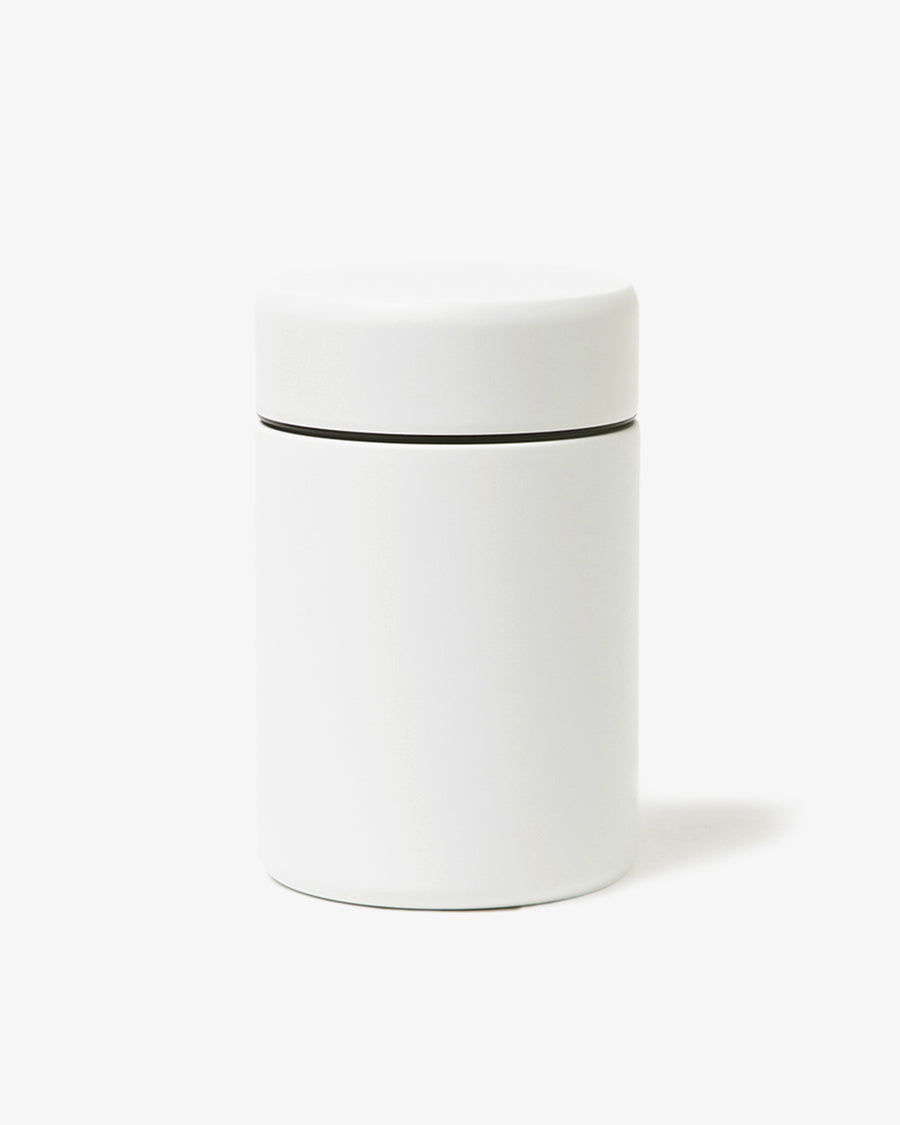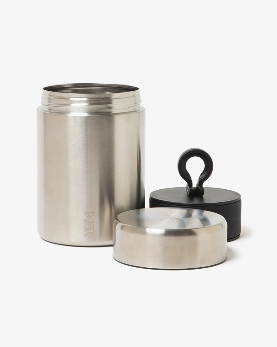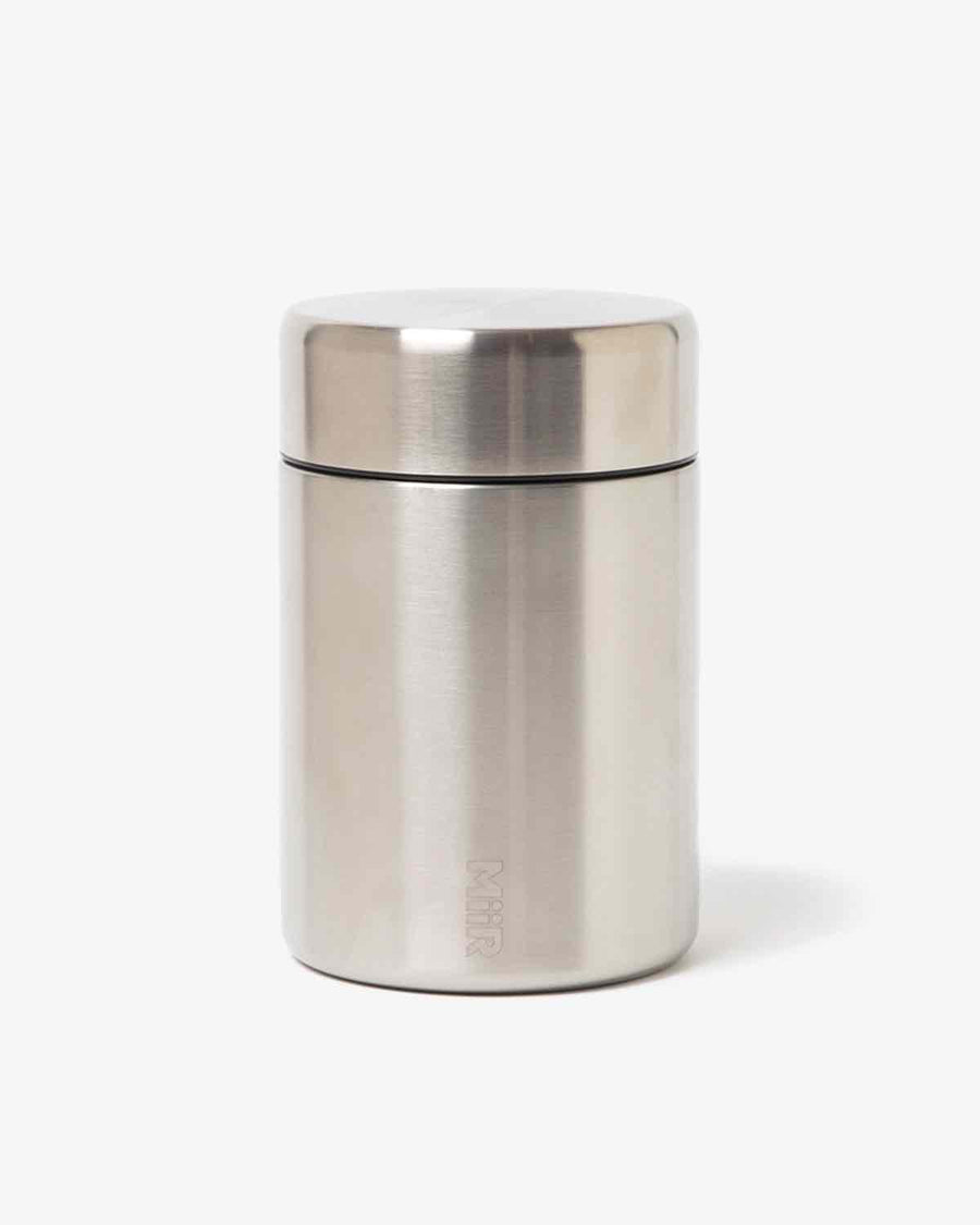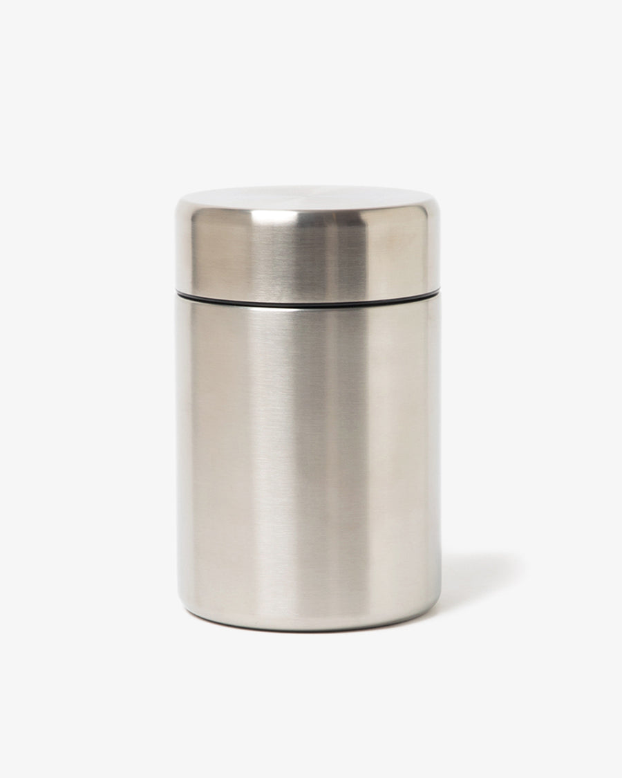 This coffee canister is made from stainless steel and features a vacuum-sealed top for ultimate freshness.