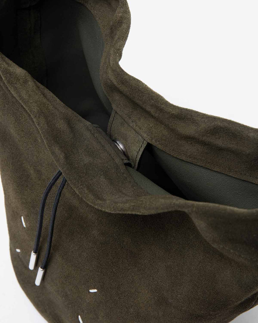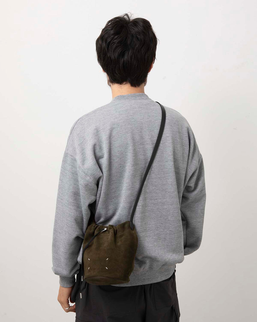 A bucket bag that transforms a casual silhouette into a refined Maison Margiela design, crafted from soft suede for a sculptural shape that elevates any look.
