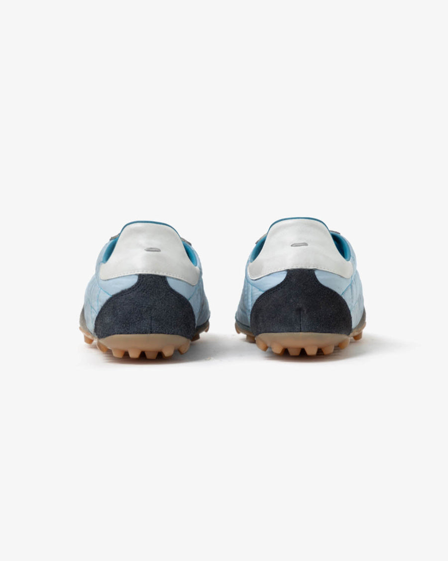 The SPRINTERS LOW TOP blends vintage-treated suede and calfskin with a retro running silhouette, bold color blocks, and Maison Margiela’s signature heel stitches.