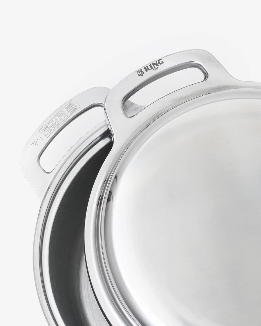 KING Mushinabe 20 – a revival of the 1953 Hiroshima waterless pot, made from thick aluminum for versatile cooking (8 methods) including rice, frying, and oven use.