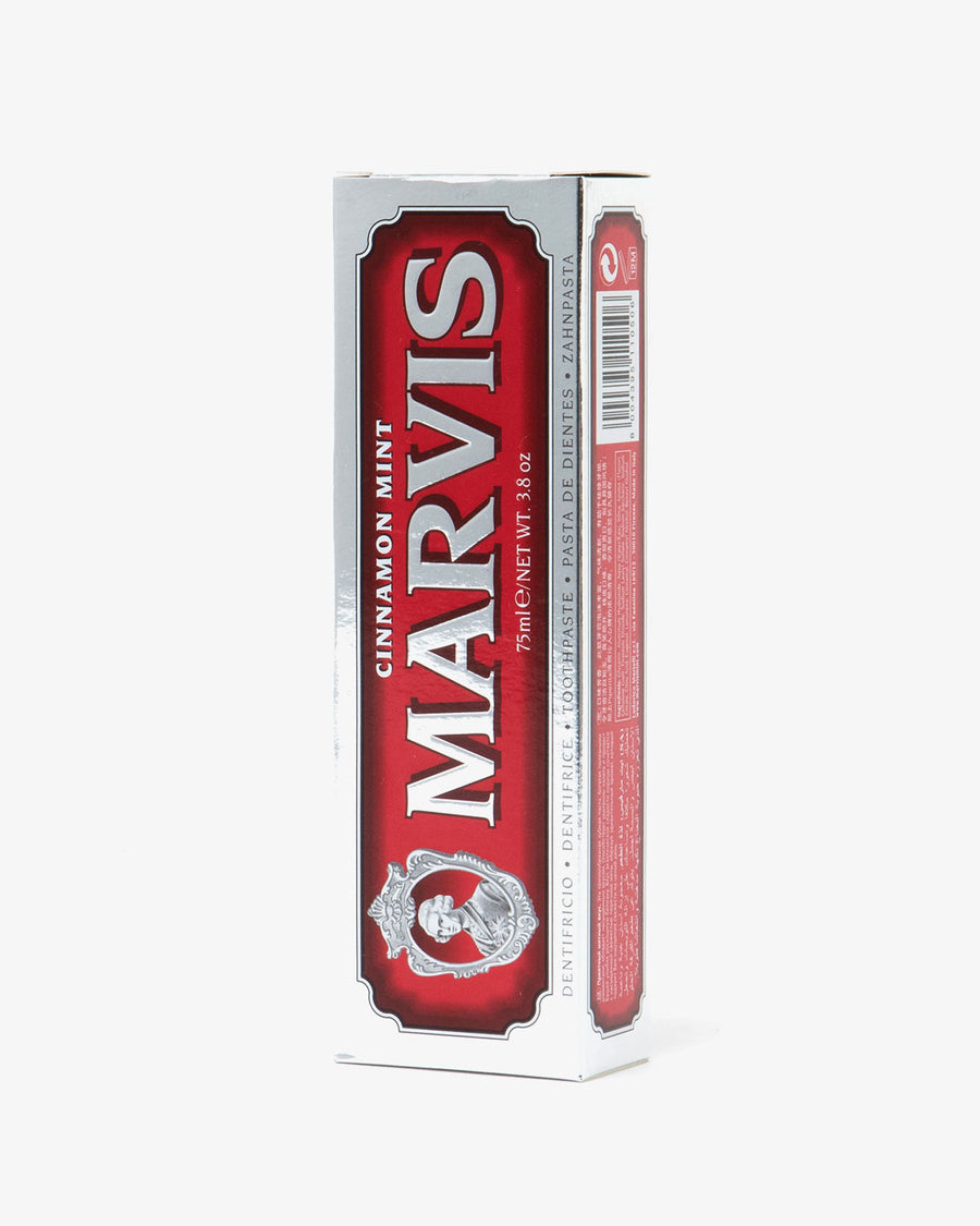 Marvis Cinnamon Mint toothpaste is a lively blend of sweet cinnamon and refreshing mint, offering a unique and lasting flavor of exotic sweetness. Its rich, creamy formula removes plaque for a sparkling smile, all encased in Marvis' signature stylish tube.