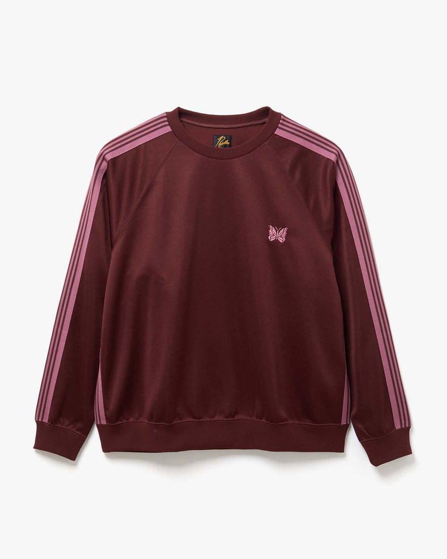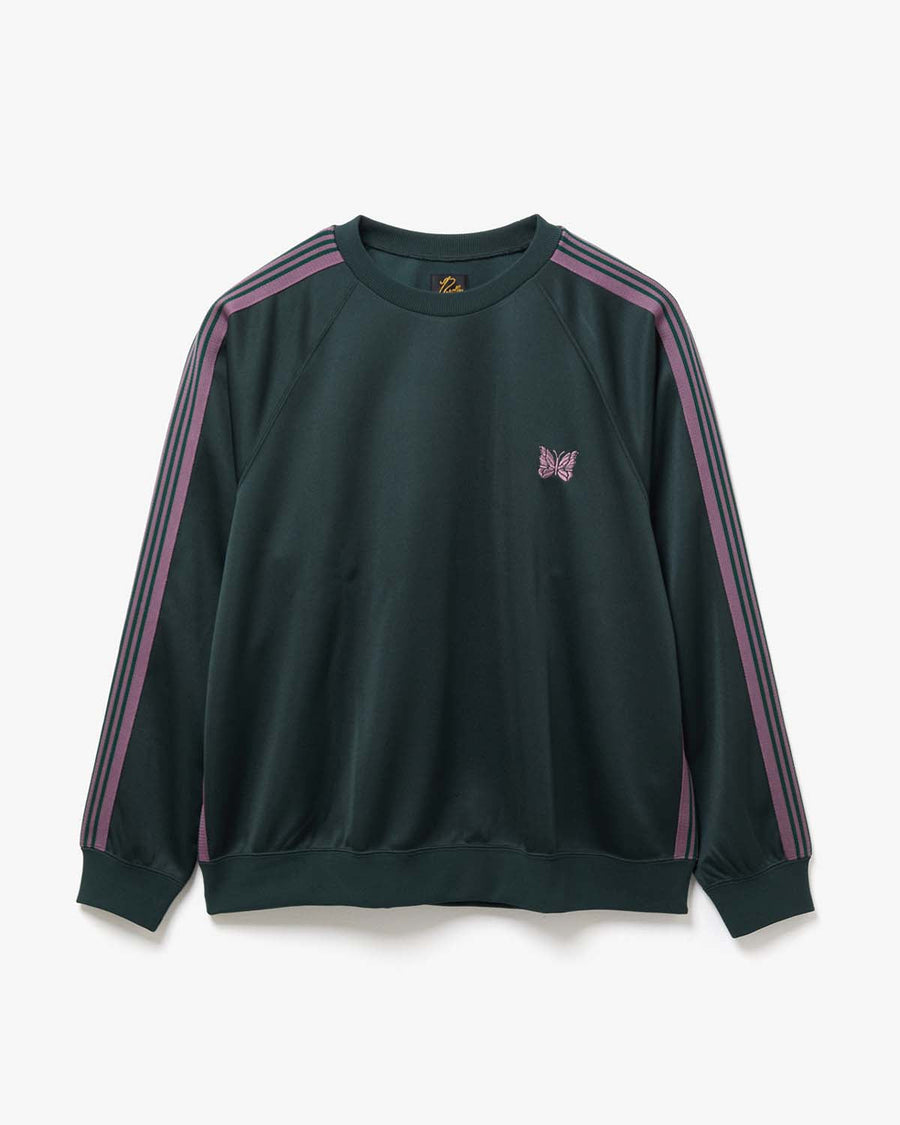 The TRACK CREW NECK reinvents athletic basics with NEEDLES' legendary polyester jersey and distinctive embroidered details.