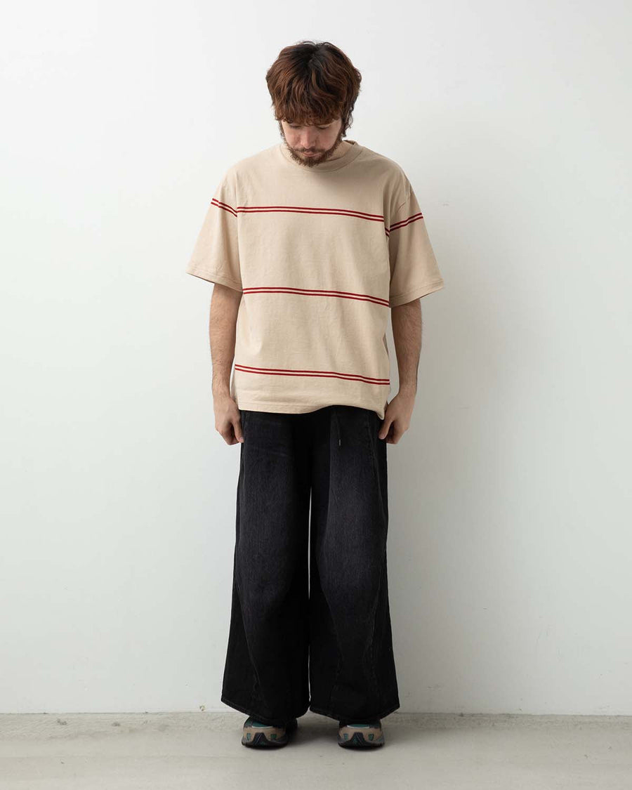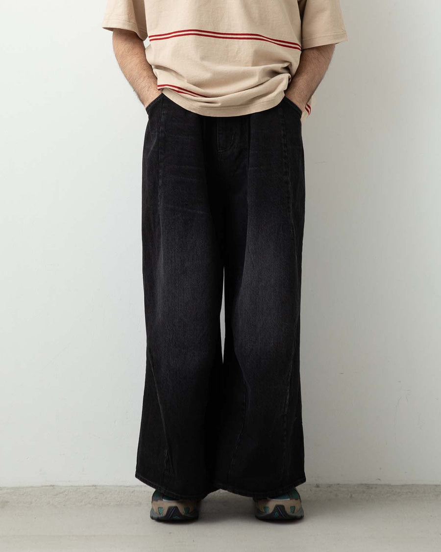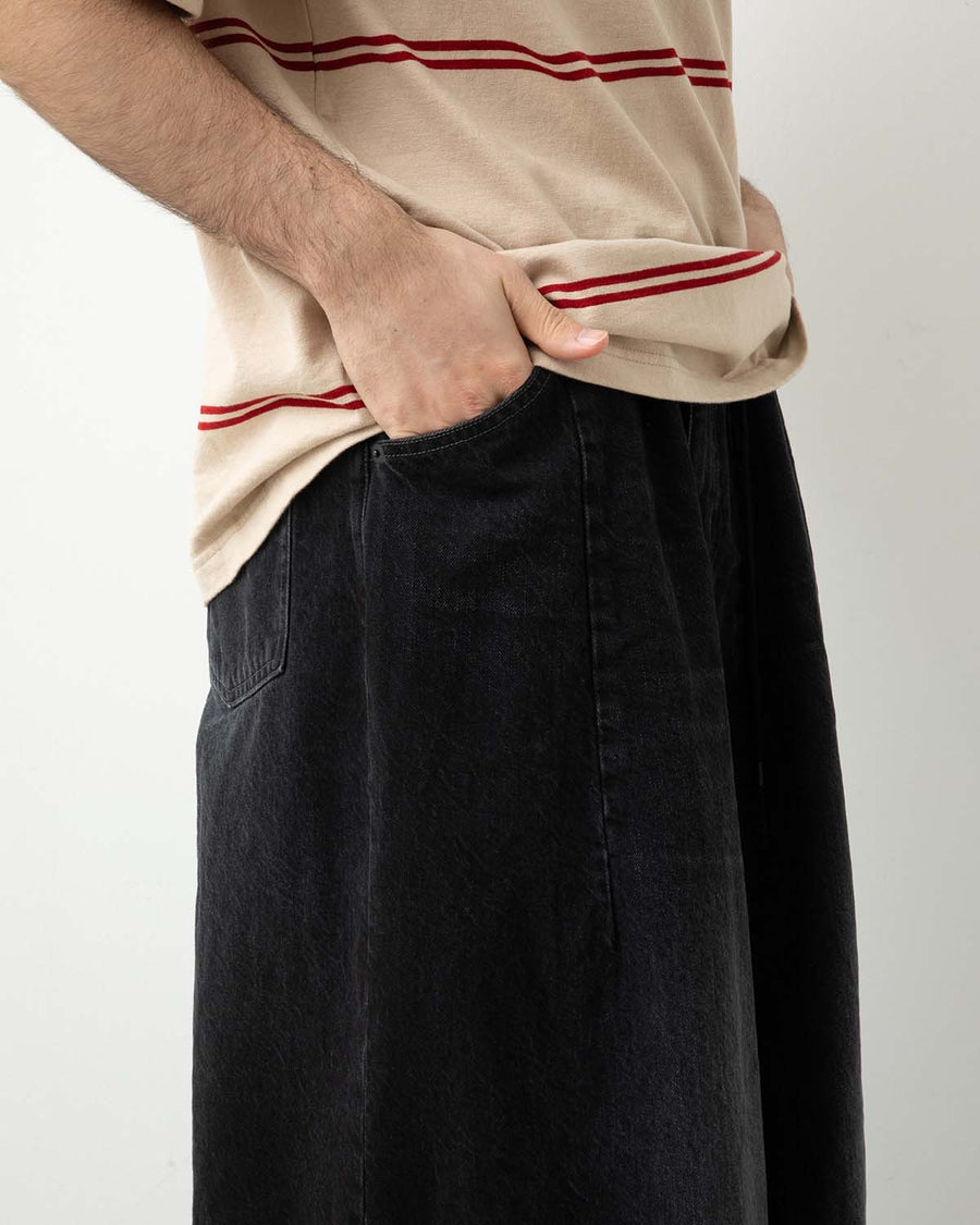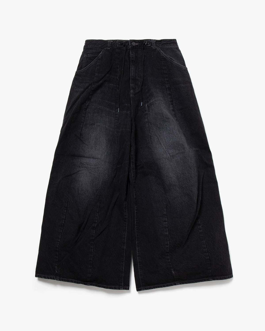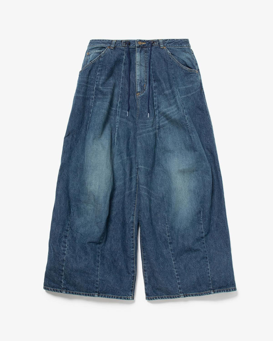 NEEDLES reworks its legendary H.D. PANT through a lens of distortion - stretched hems meet exaggerated darts in time-washed denim, creating intentional imbalance that moves with rebellion.