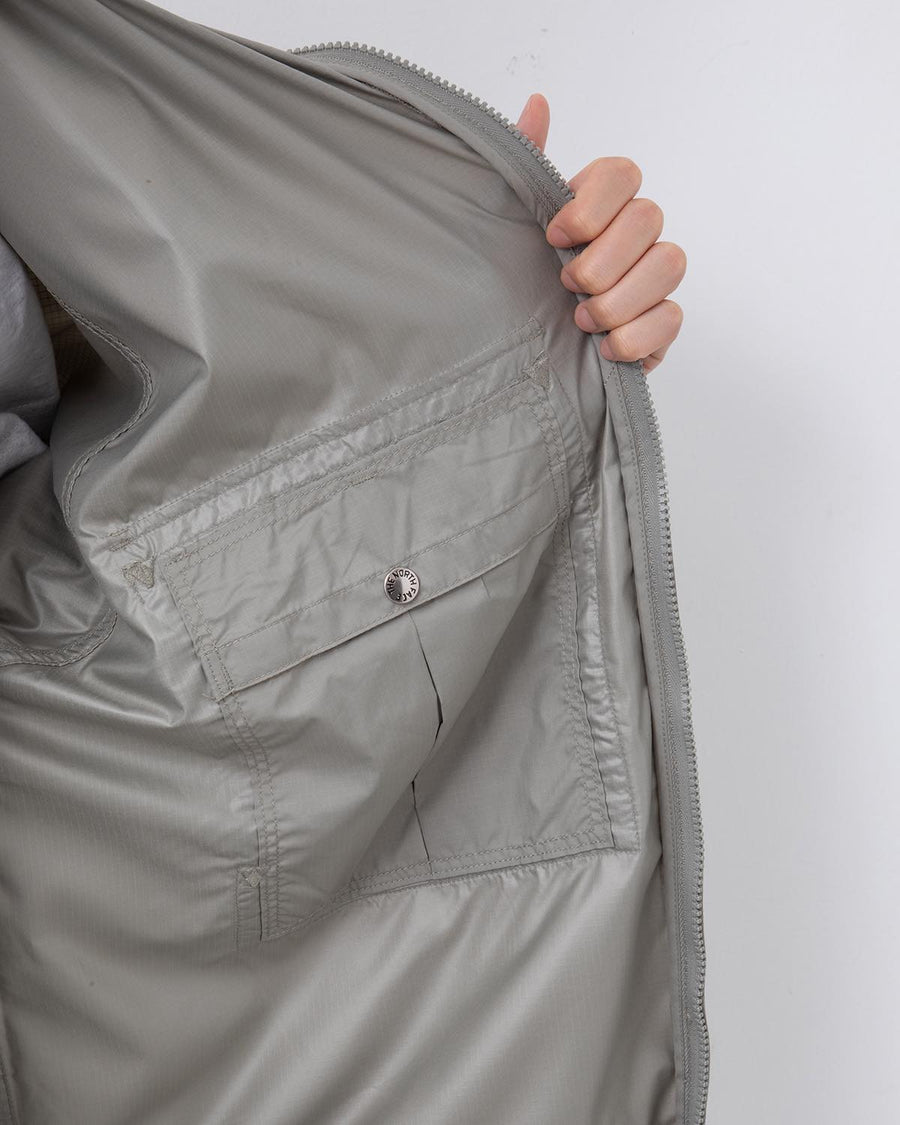 This mountain parka is made from PERTEX® QUANTUM 50D recycled polyester ripstop, with water resistance, a large front pocket, and a packable, oversized design.
