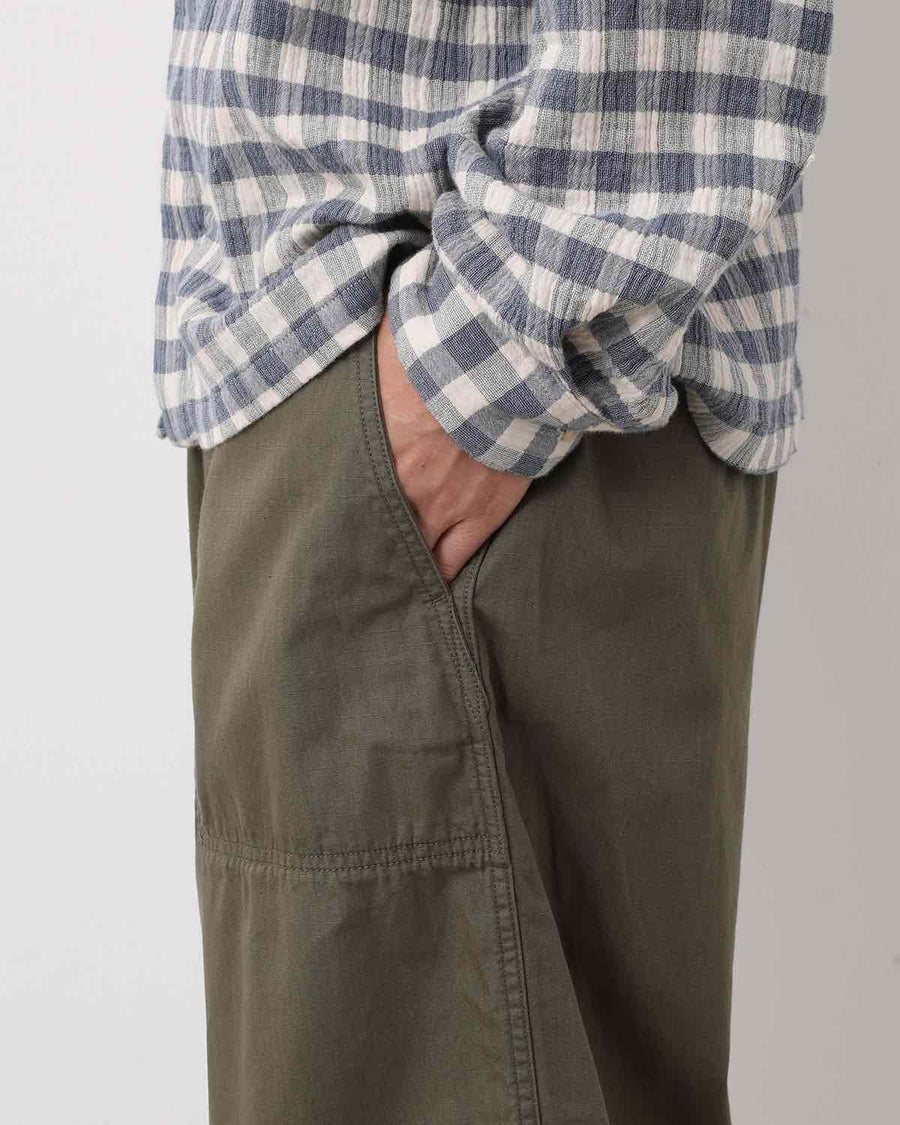 Easy trousers made from lightweight, tear- and abrasion-resistant cotton-nylon ripstop. Based on vintage climbing pants, updated with a cropped wide silhouette.