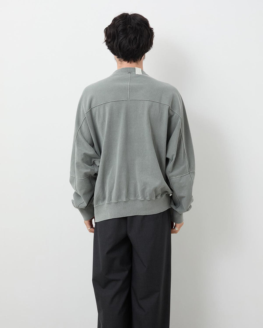 片面は無地、もう一面は切り替えデザインを採用したことで、異なる表情を楽しめるリバーシブル仕様のクルーネックスウェットです。