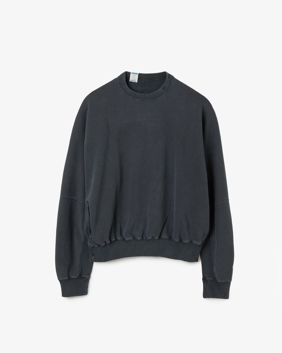 素材には、〈Champion〉と共同製作したオリジナルの裏起毛素材と肌触りの良いコットン100%天竺を使用した、ガーメントダイ加工を施すことでヴィンテージライクな表情を表現しています。