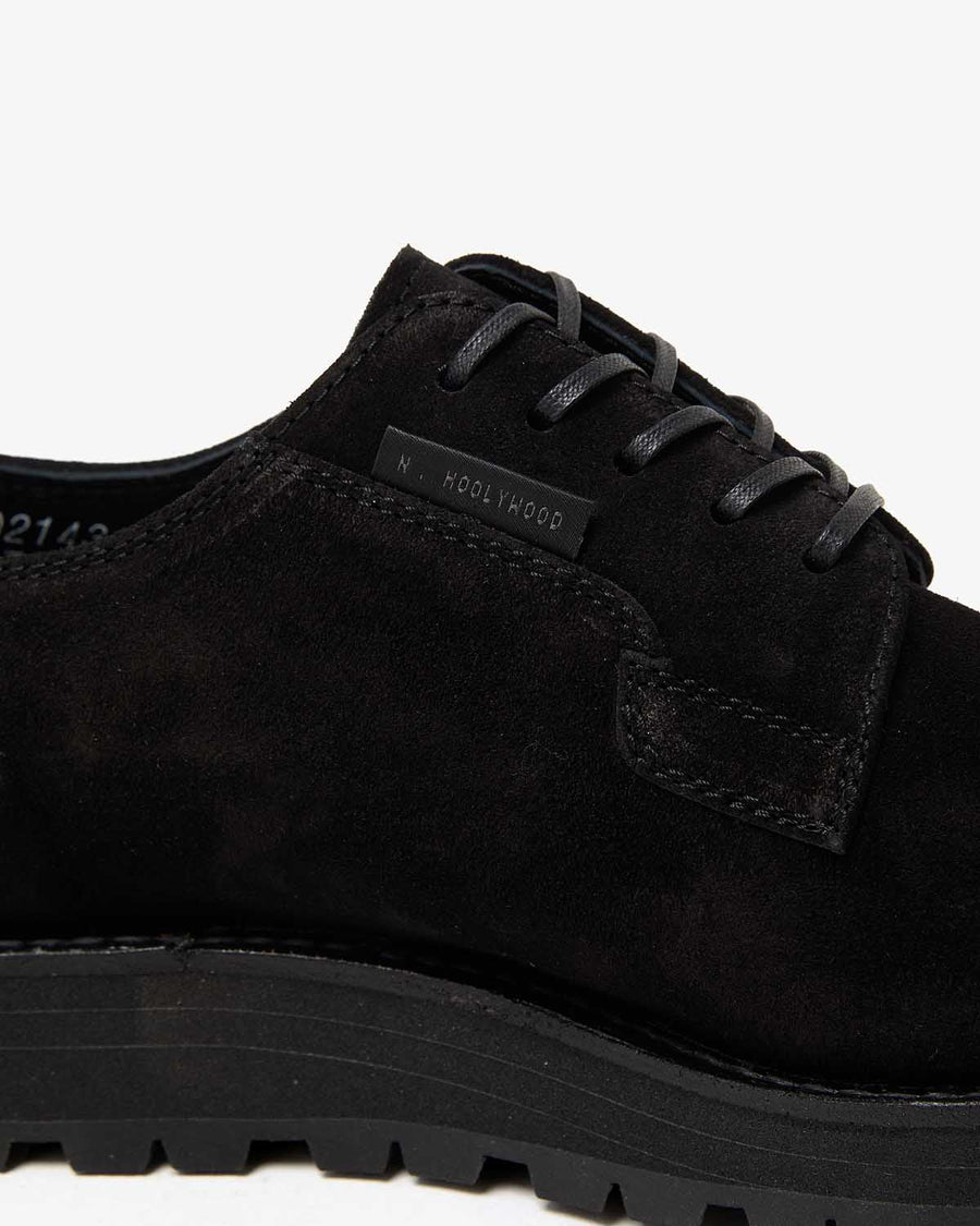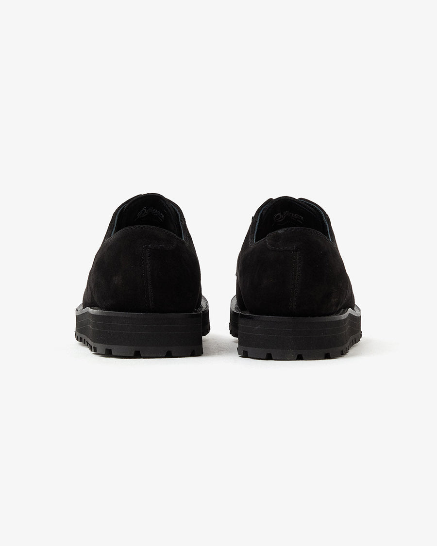 Classic postman shoes reimagined in Japan with Italian suede, rugged stitching, waxed laces, Vibram soles, and N.HOOLYWOOD COMPILE detailing.
