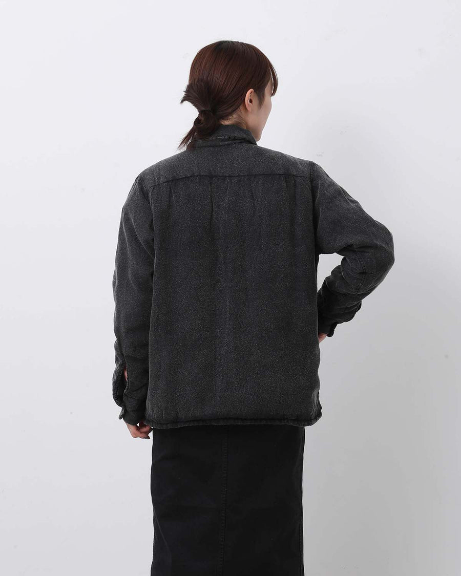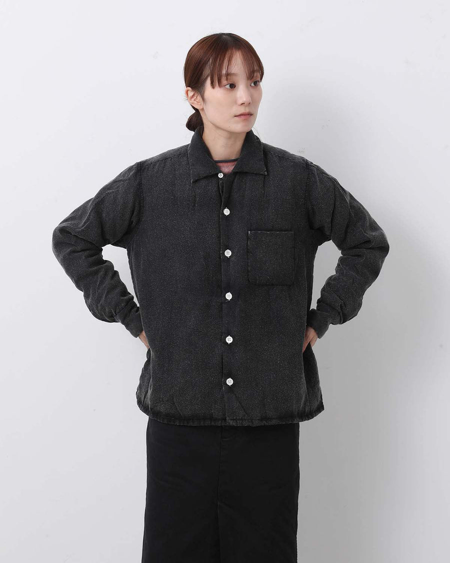 Overshirt with hand-dyed garment finish, puffer-inspired volume, and refined detailing for a versatile, stylish look.