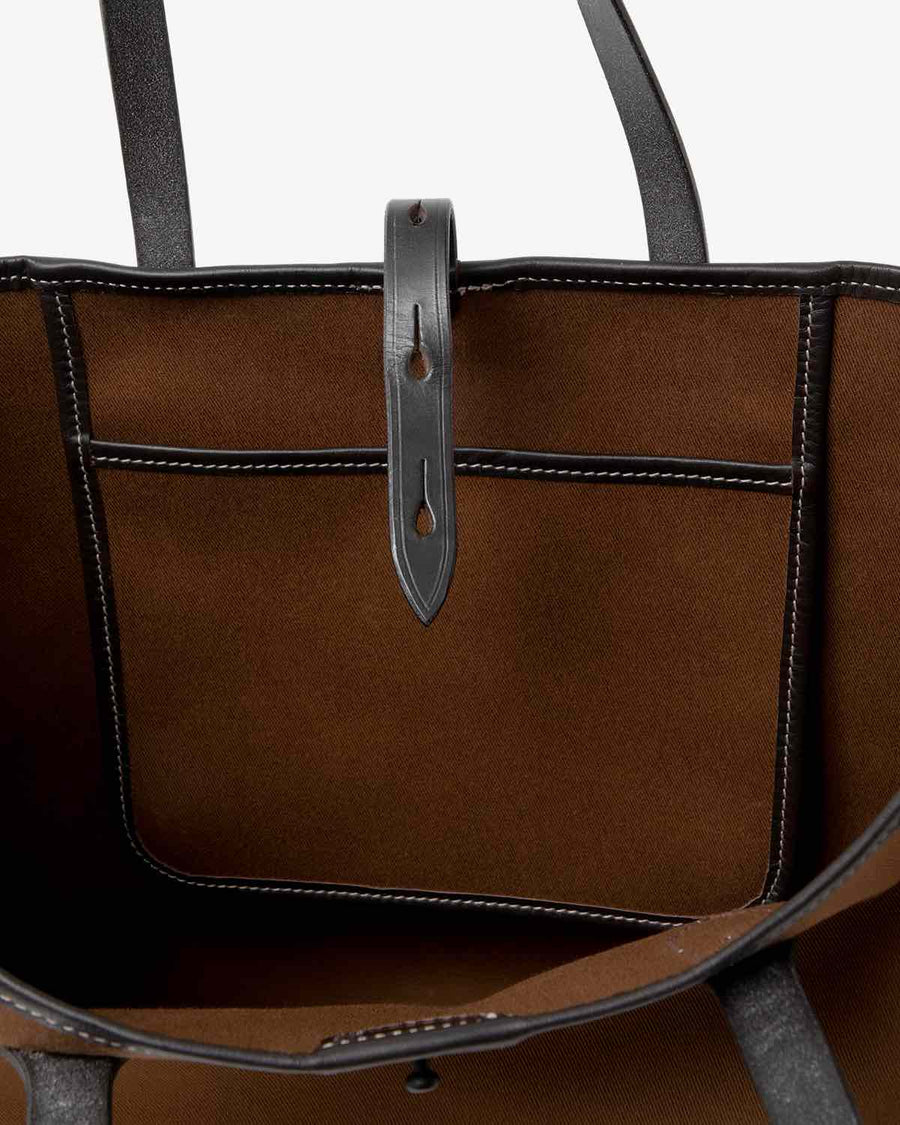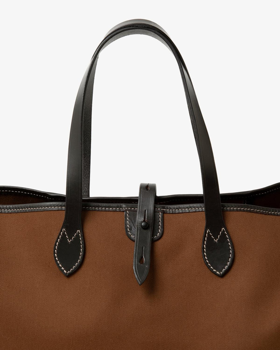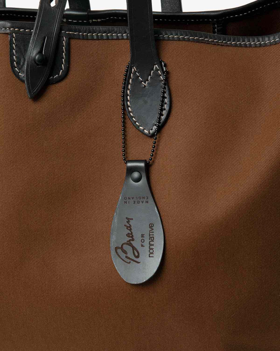 The QUEENSWOOD tote by Brady × nonnative updates the CONDER with added depth, black hardware, and bridle leather accents.