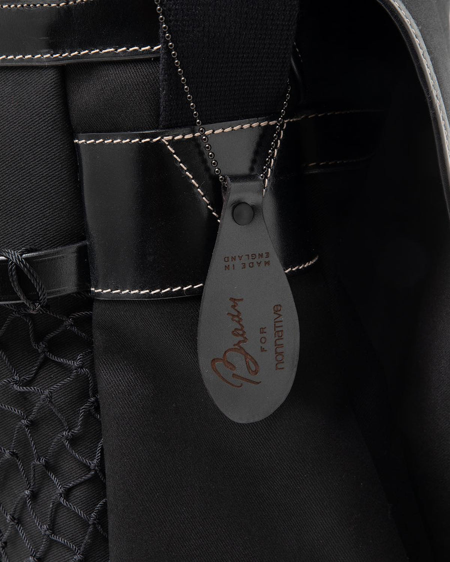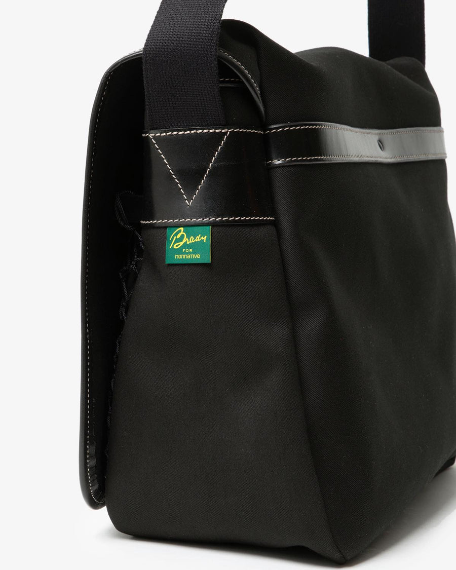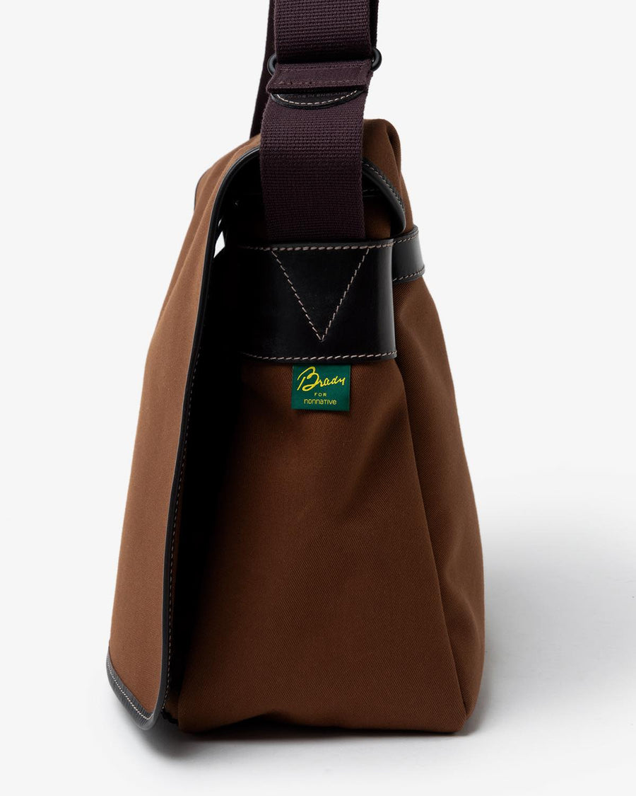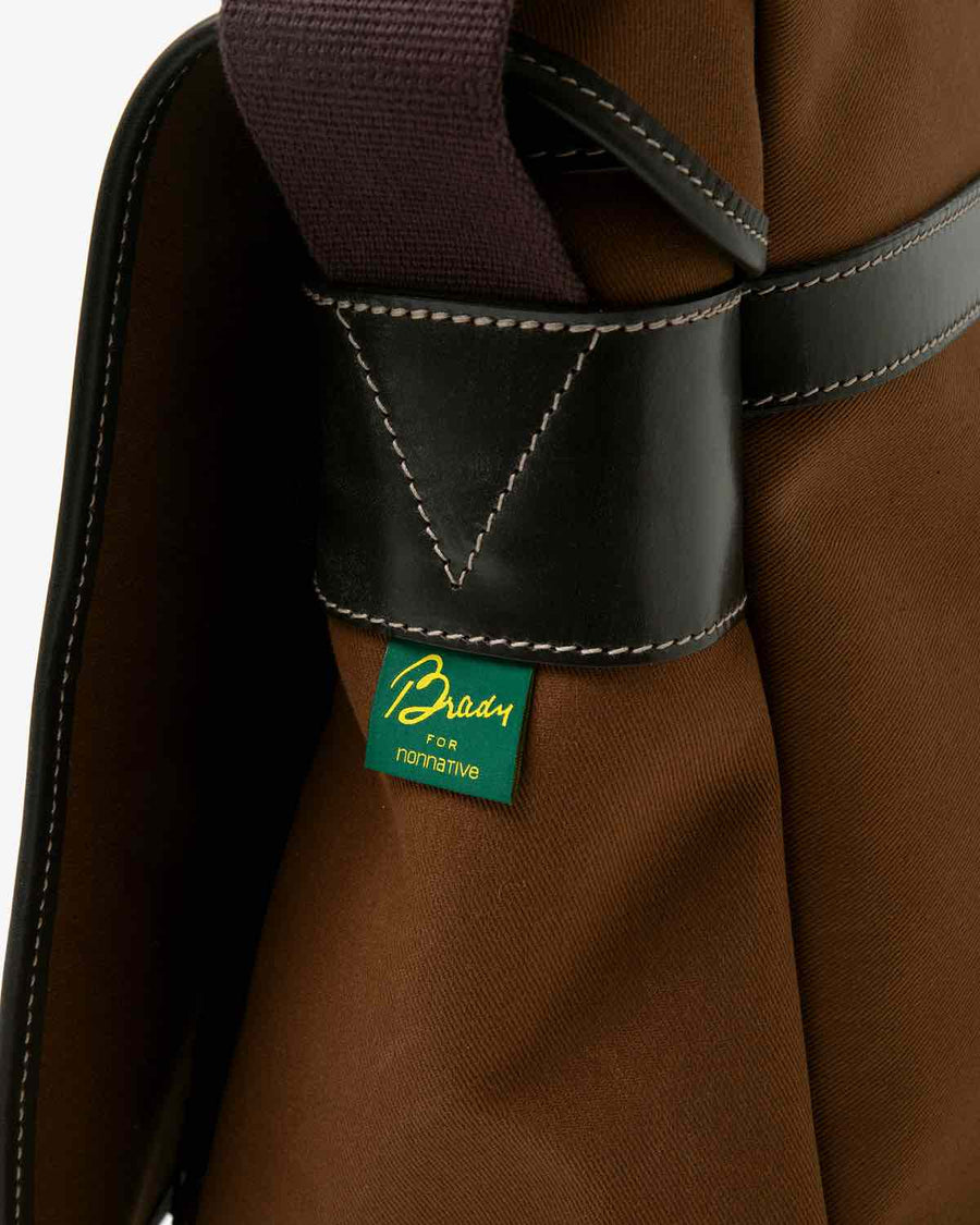 The KINGSWOOD shoulder bag by Brady × nonnative features custom black hardware, bridle leather accents, and a dual-branded tag.
