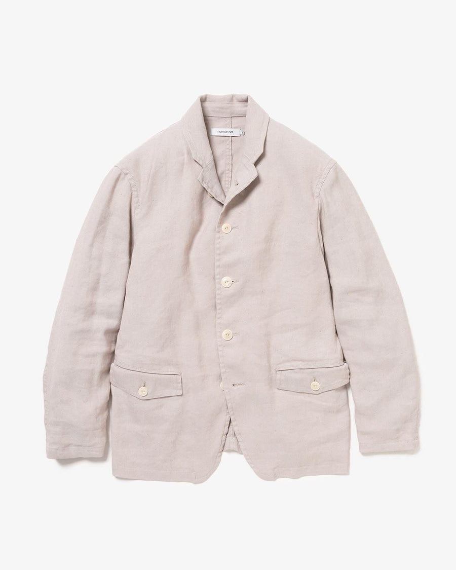 nonnative SPRING & SUMMER 2025 COLLECTIONより、リネンアセテート混紡のツイル素材を使用した5つボタンのワークジャケットです。