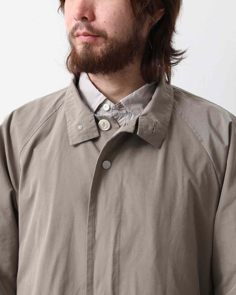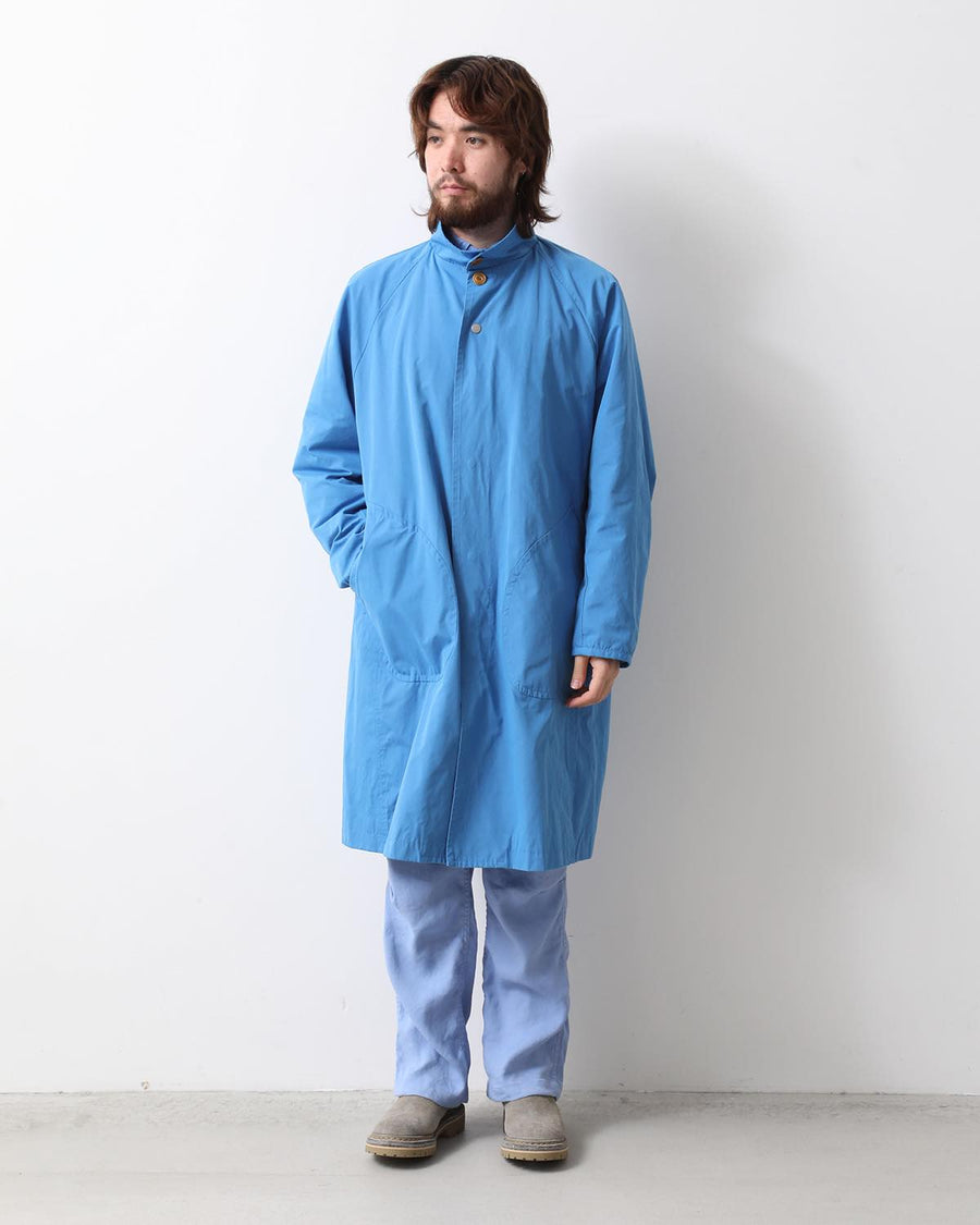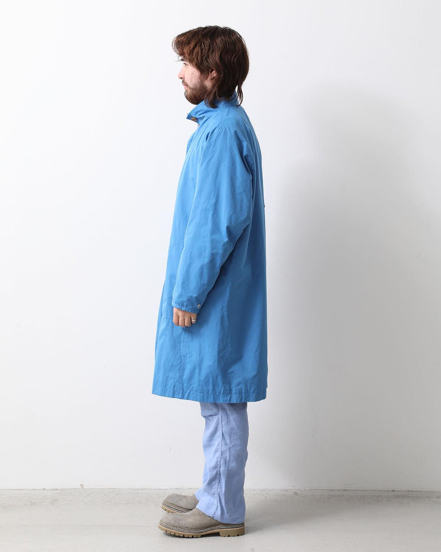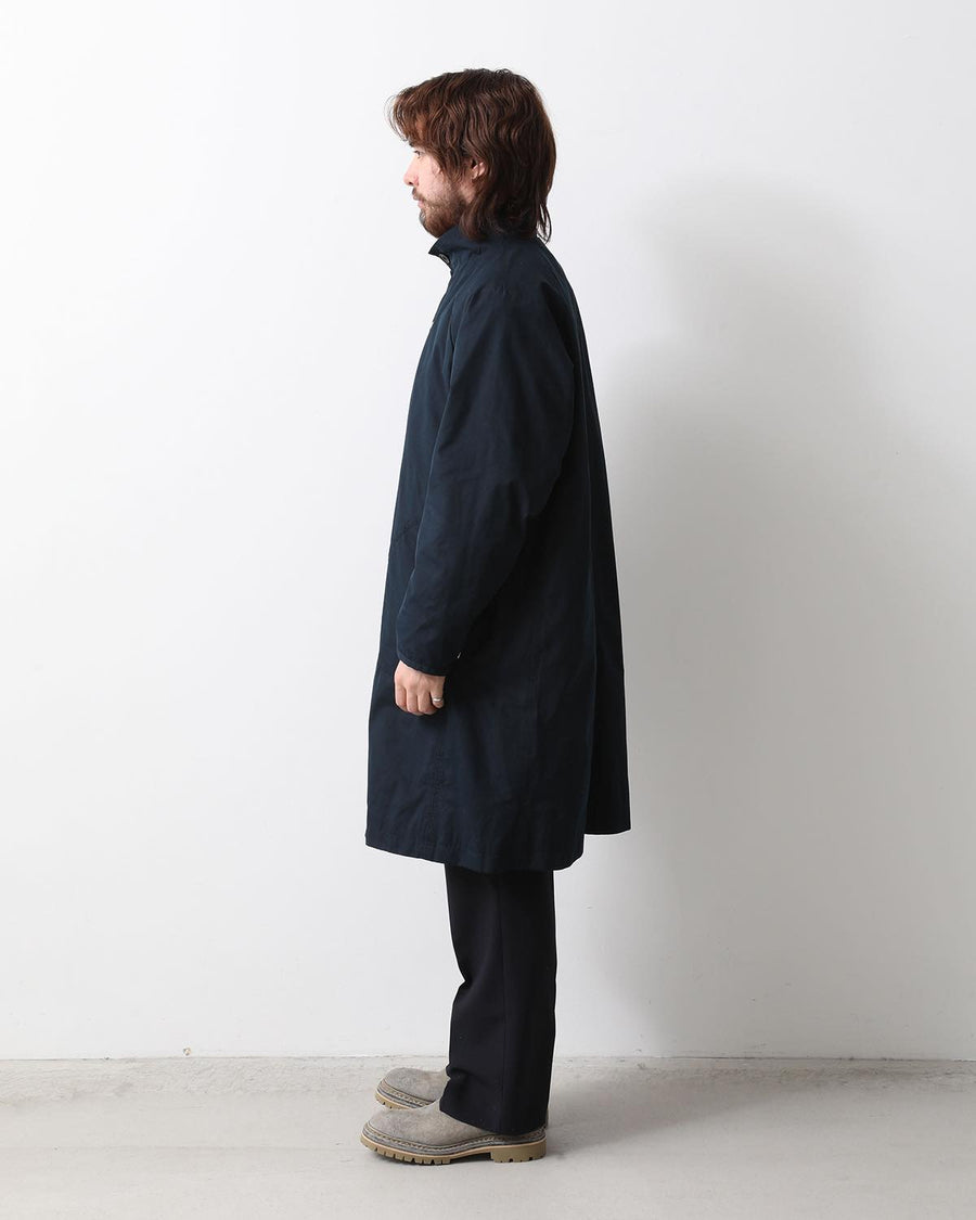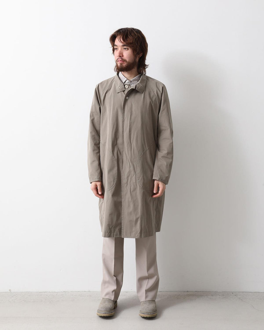 From the nonnative SPRING & SUMMER 2025 COLLECTION, this Balmacaan-style long coat features a slightly smaller standing collar and a relaxed silhouette. It combines elegant style with casual details like patch pockets.
