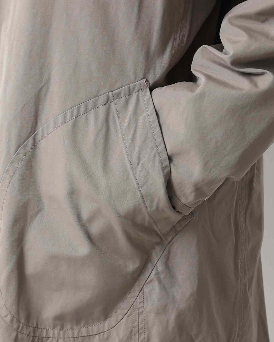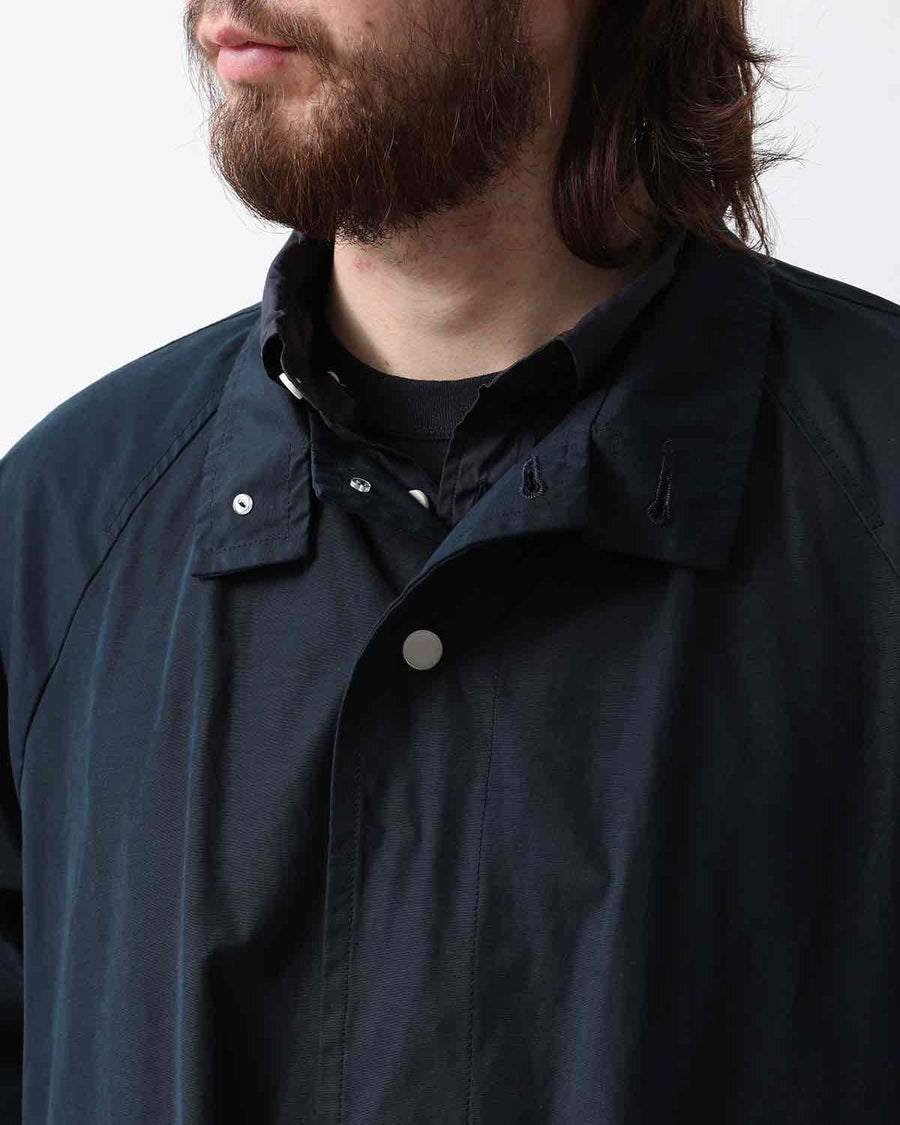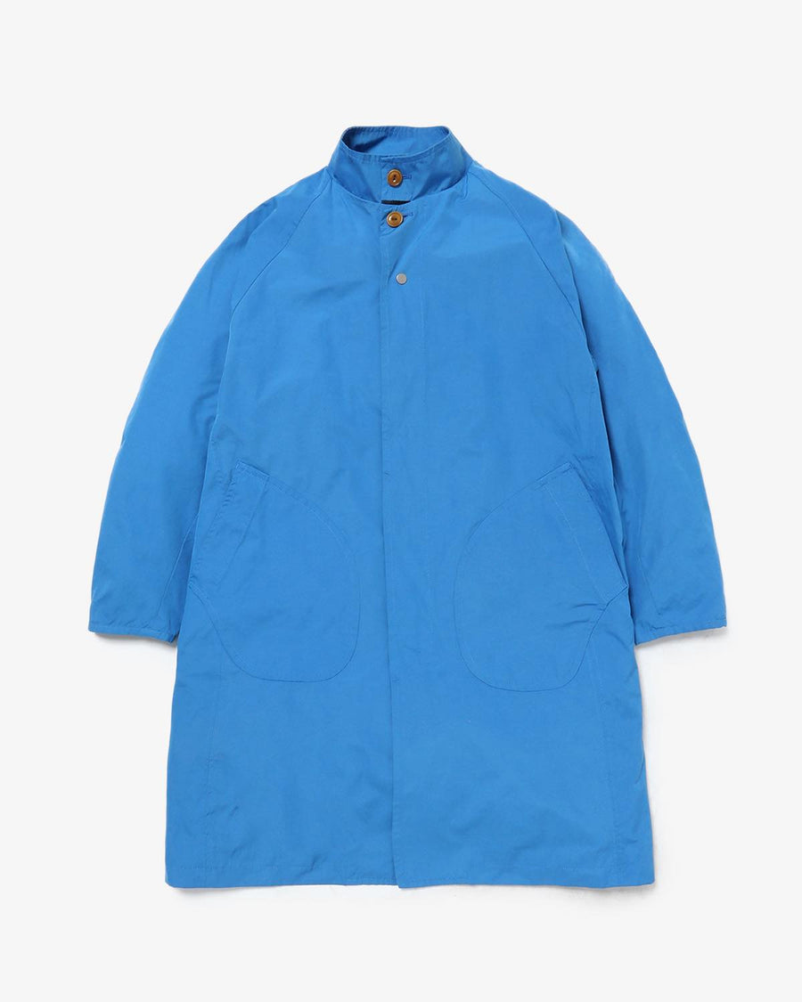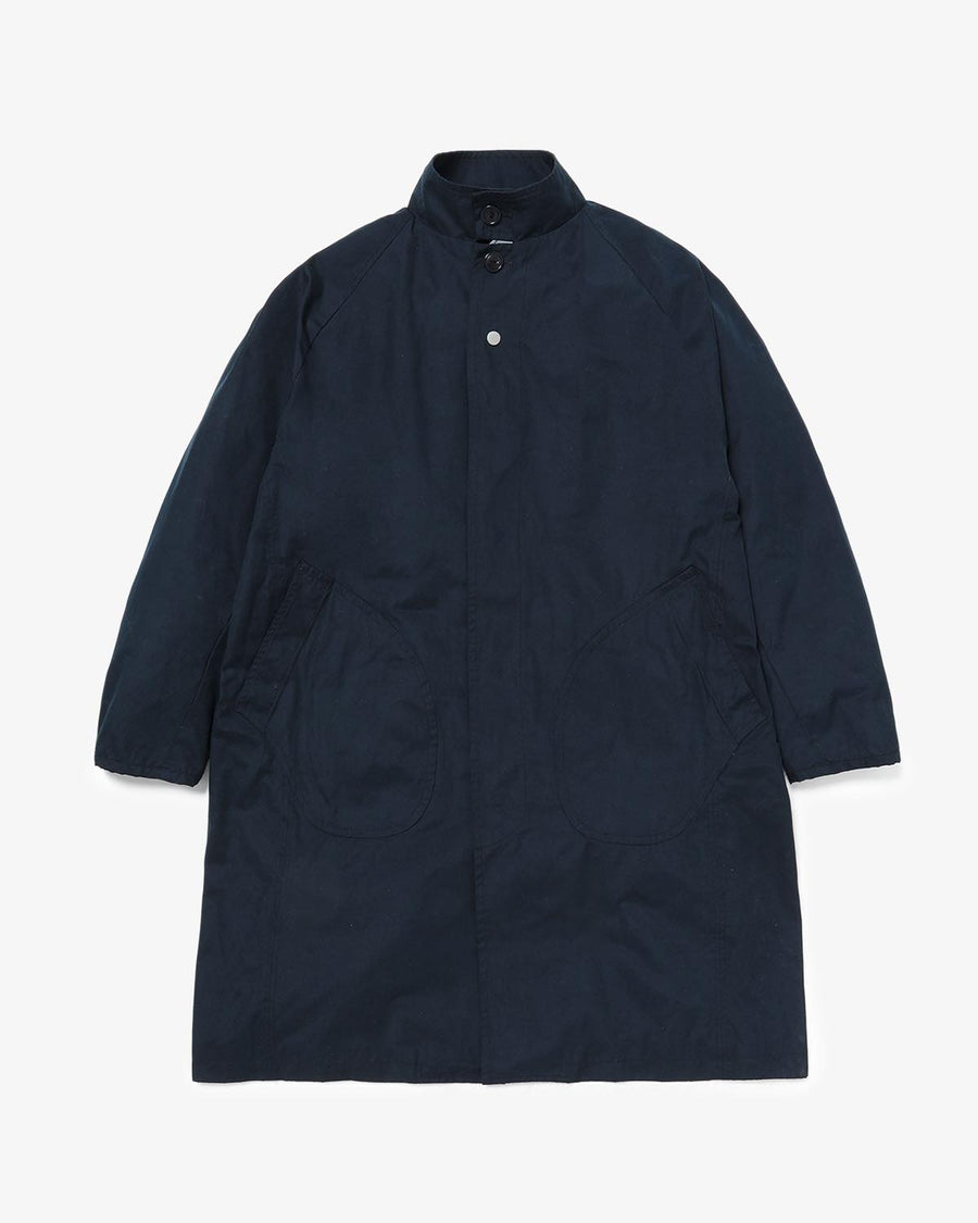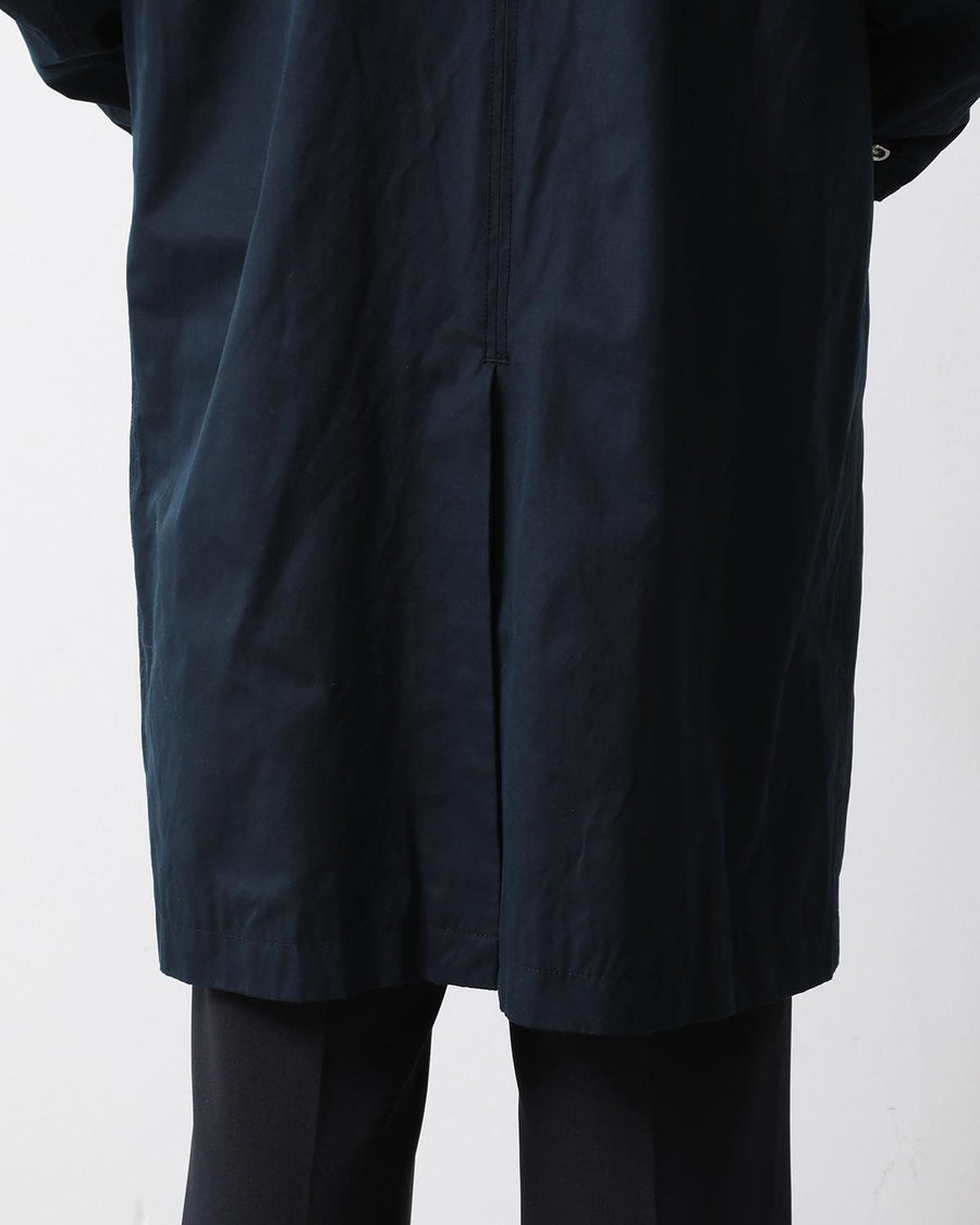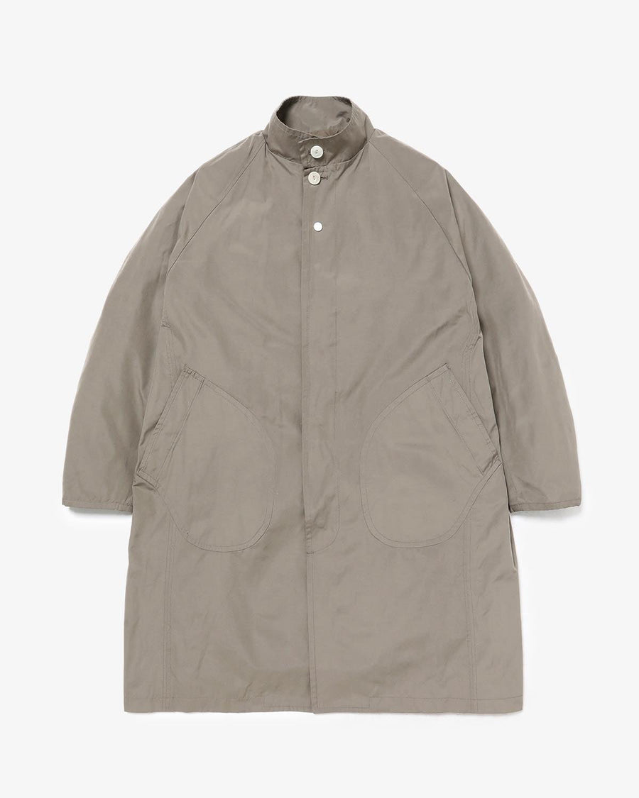 From the nonnative SPRING & SUMMER 2025 COLLECTION, this Balmacaan-style long coat features a slightly smaller standing collar and a relaxed silhouette. It combines elegant style with casual details like patch pockets.