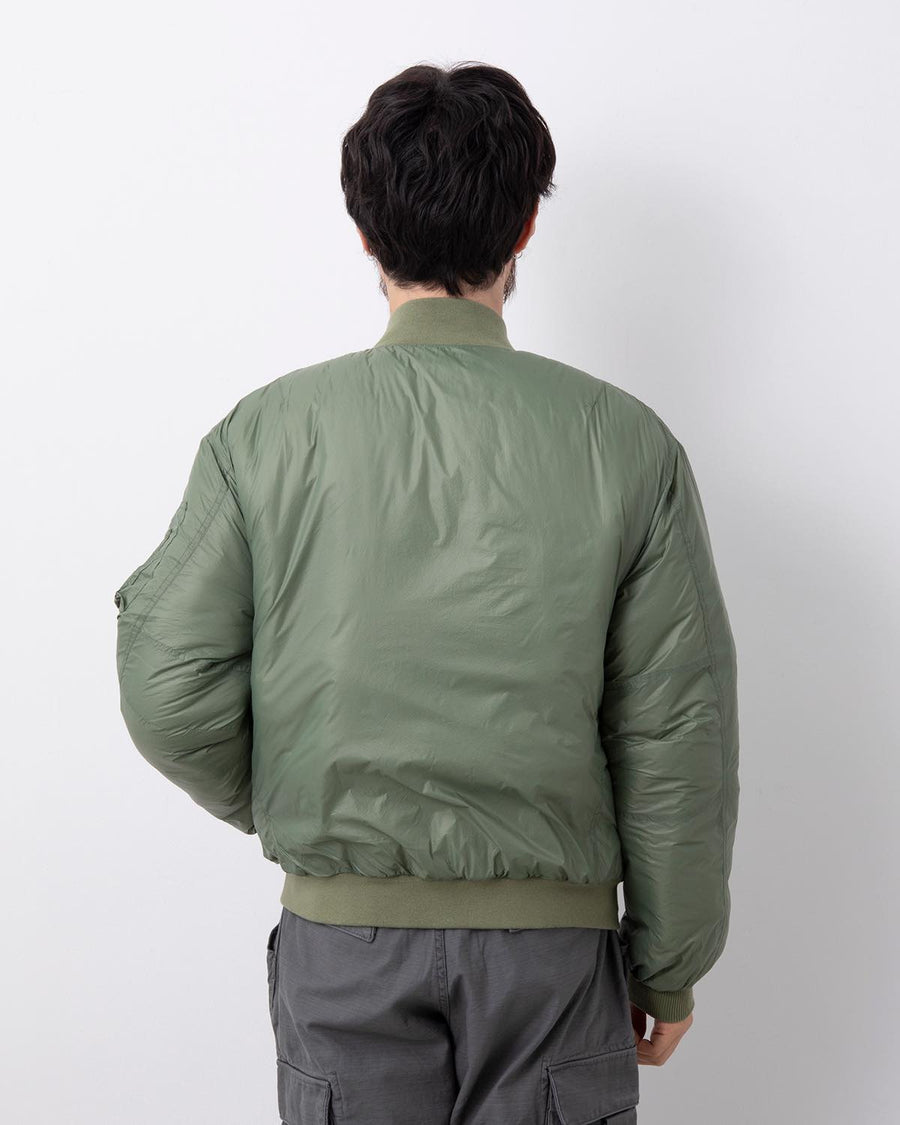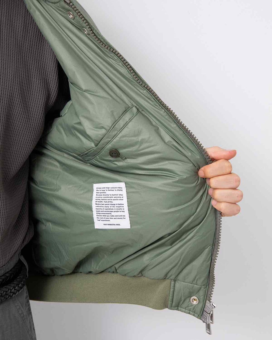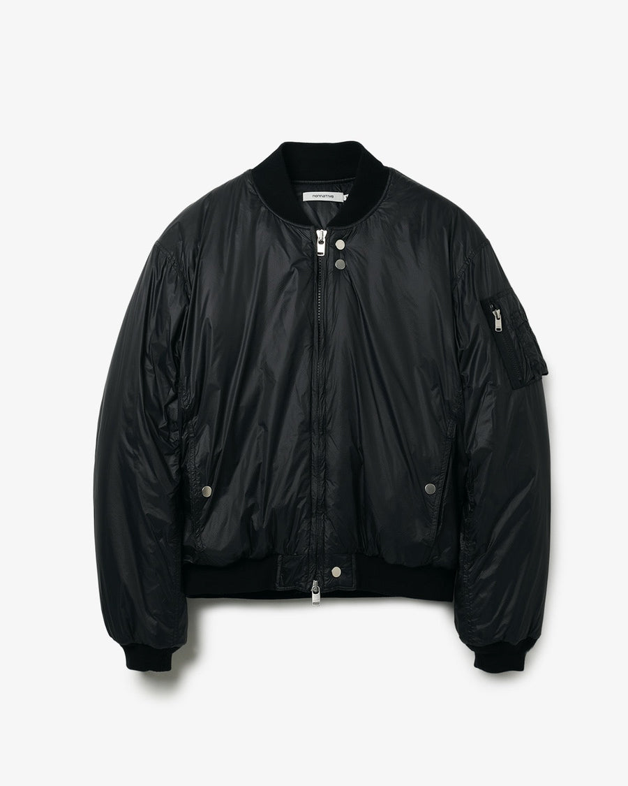 From the AUTUMN & WINTER 2025 COLLECTION, this MA-1 style padded blouson is crafted from a soft, ultra-light nylon ripstop fabric. Generously filled for volume, it features a slightly cropped length and a relaxed silhouette.