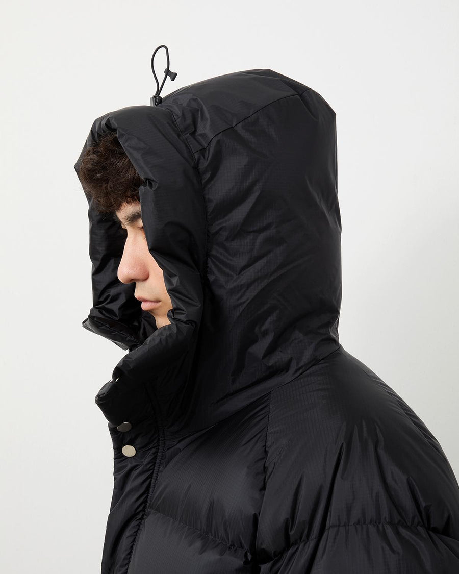 This down jacket from the AUTUMN & WINTER 2025 COLLECTION is crafted from crisp, lightweight nylon ripstop, updating a classic design with modern materials and a contemporary silhouette.