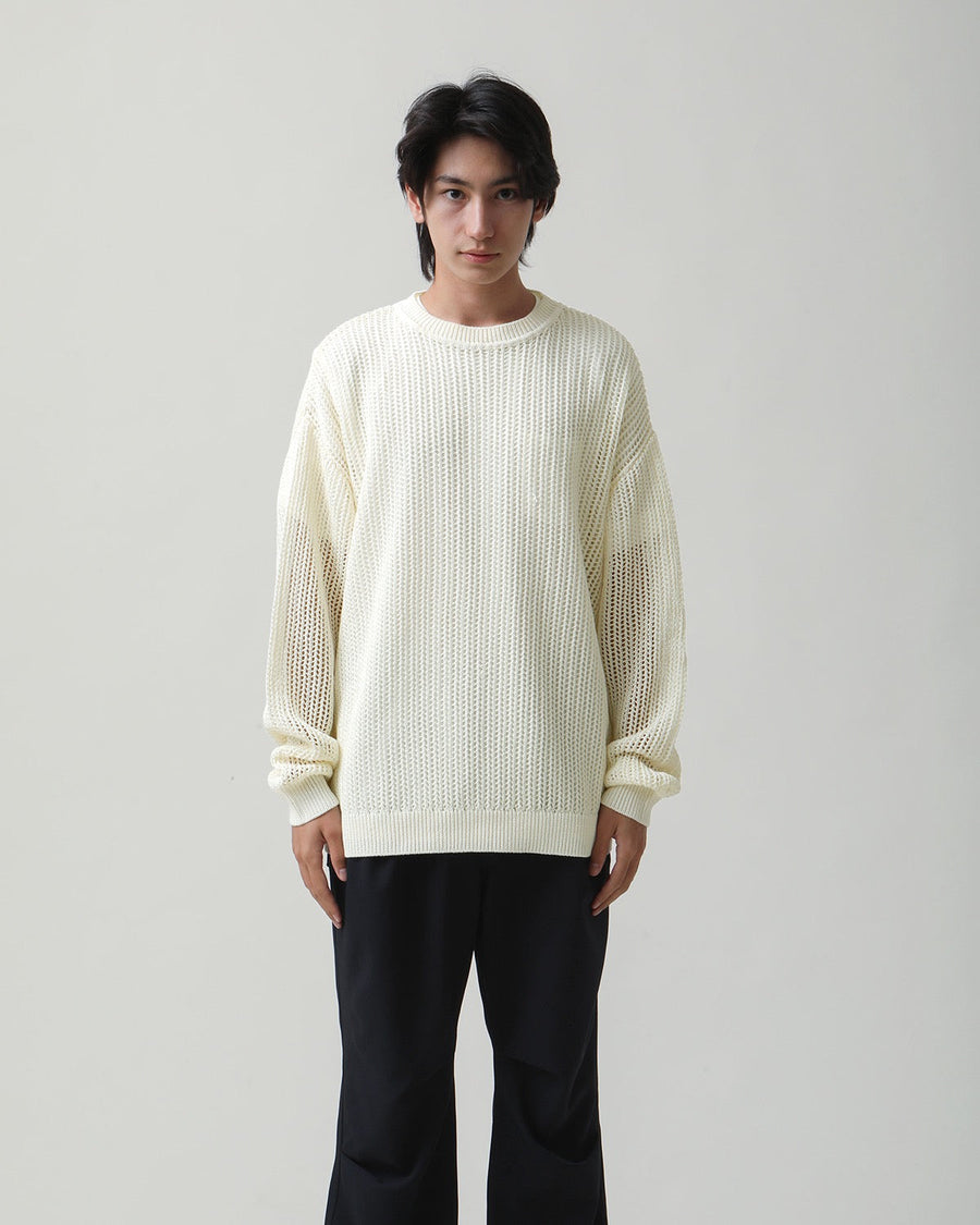 nonnative SPRING & SUMMER 2025 crew-neck knit in a washi-linen blend, featuring a lightweight mesh and relaxed fit.