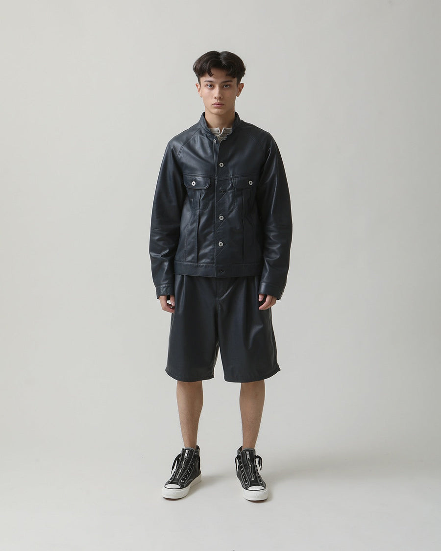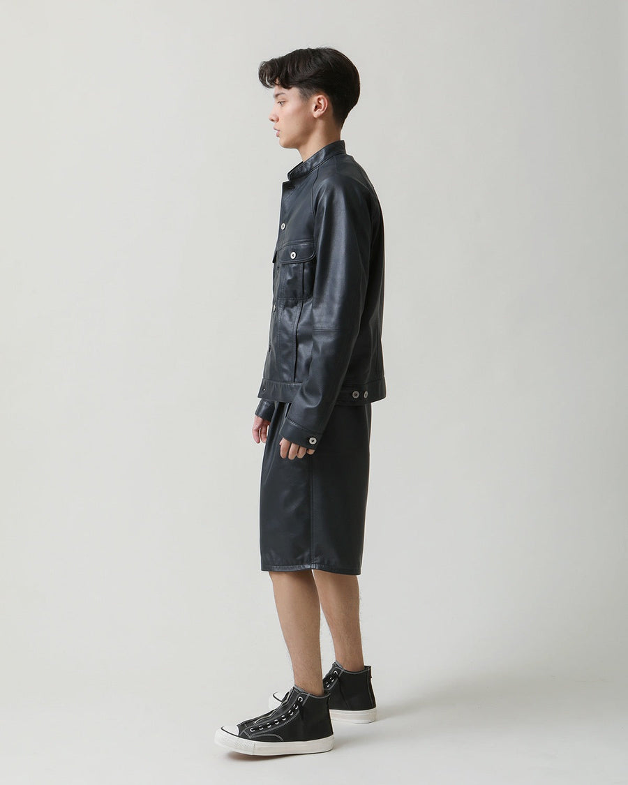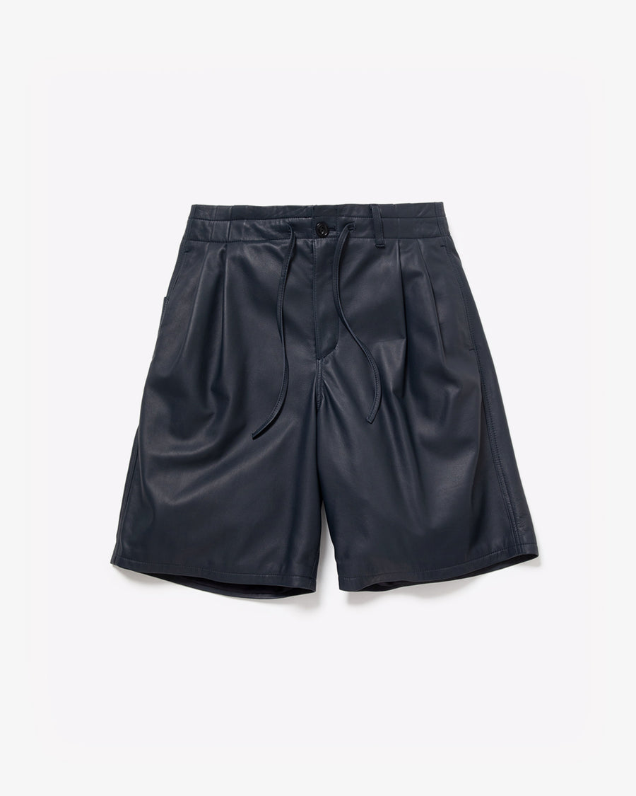 Easy shorts in supple sheep leather with a high rise, two pleats, and a tapered fit, featuring a drawstring waist for easy wear.