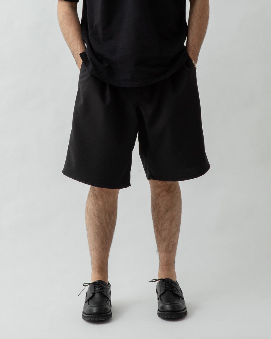 Basic nylon easy shorts from nonnative MID-SUMMER 2025 with deep rise, two tucks, tapered fit, and drawcord waist.