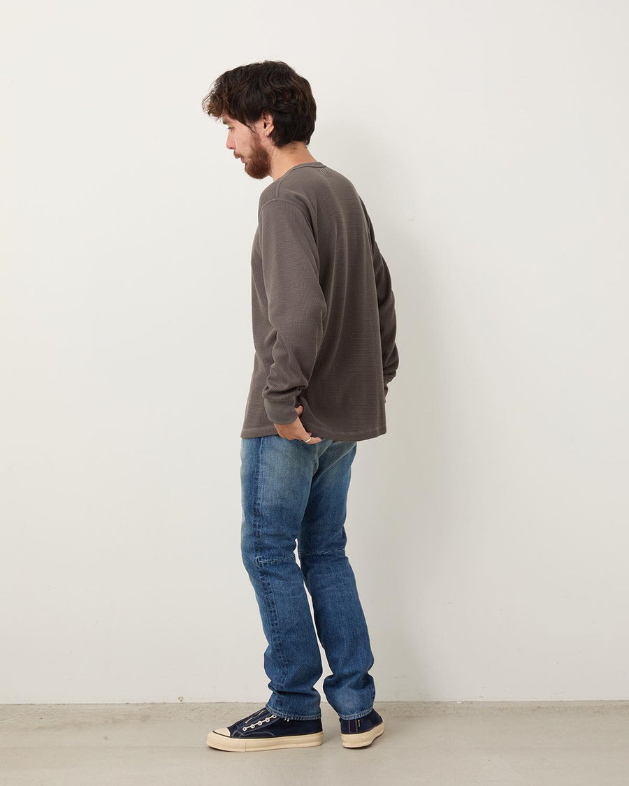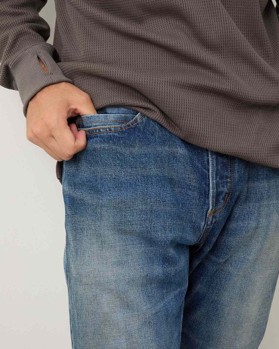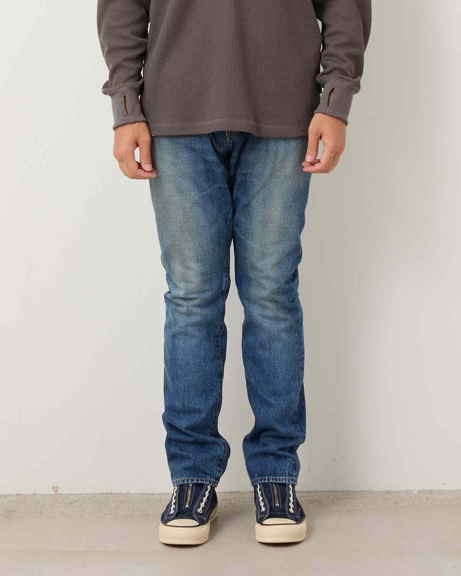 From the AUTUMN & WINTER 2025 COLLECTION, these 5-pocket jeans are made of 13.5oz original denim with a vintage wash.They feature a slim straight silhouette with a slightly relaxed waist.