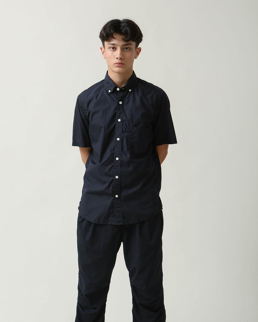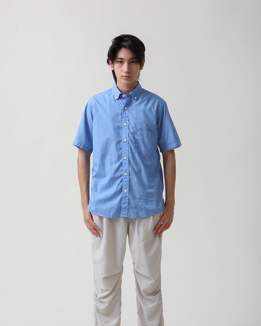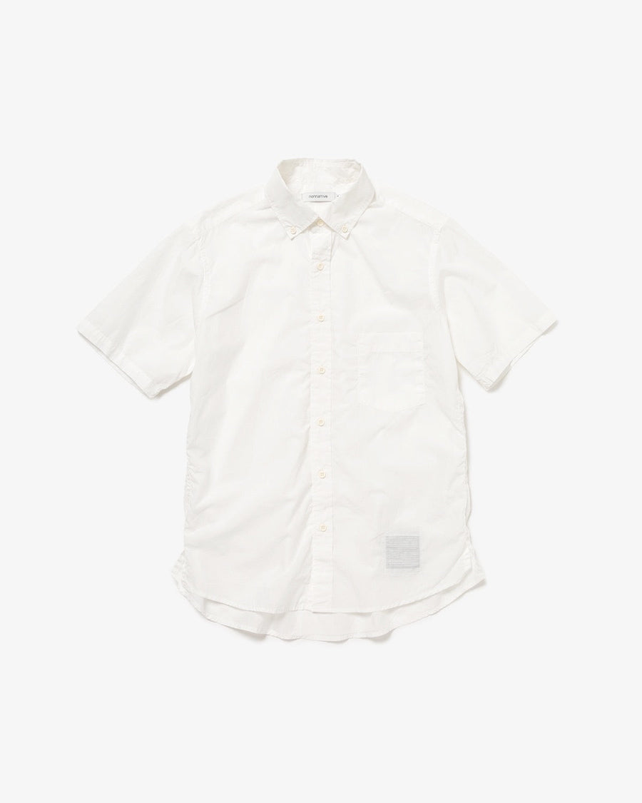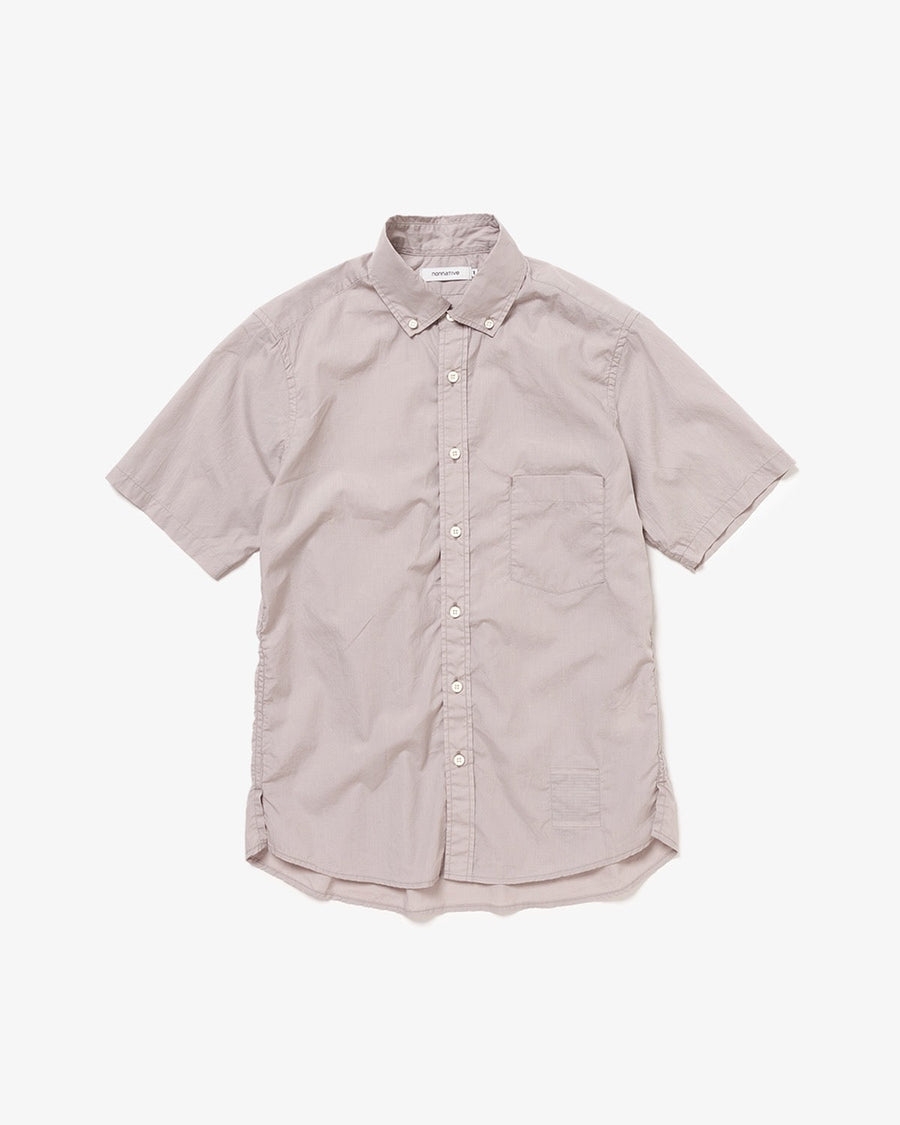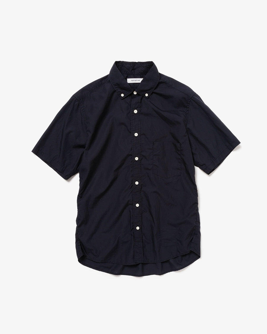 From nonnative SS25, a short-sleeve button-down shirt in dry-touch typewriter fabric with a refined, smaller collar.