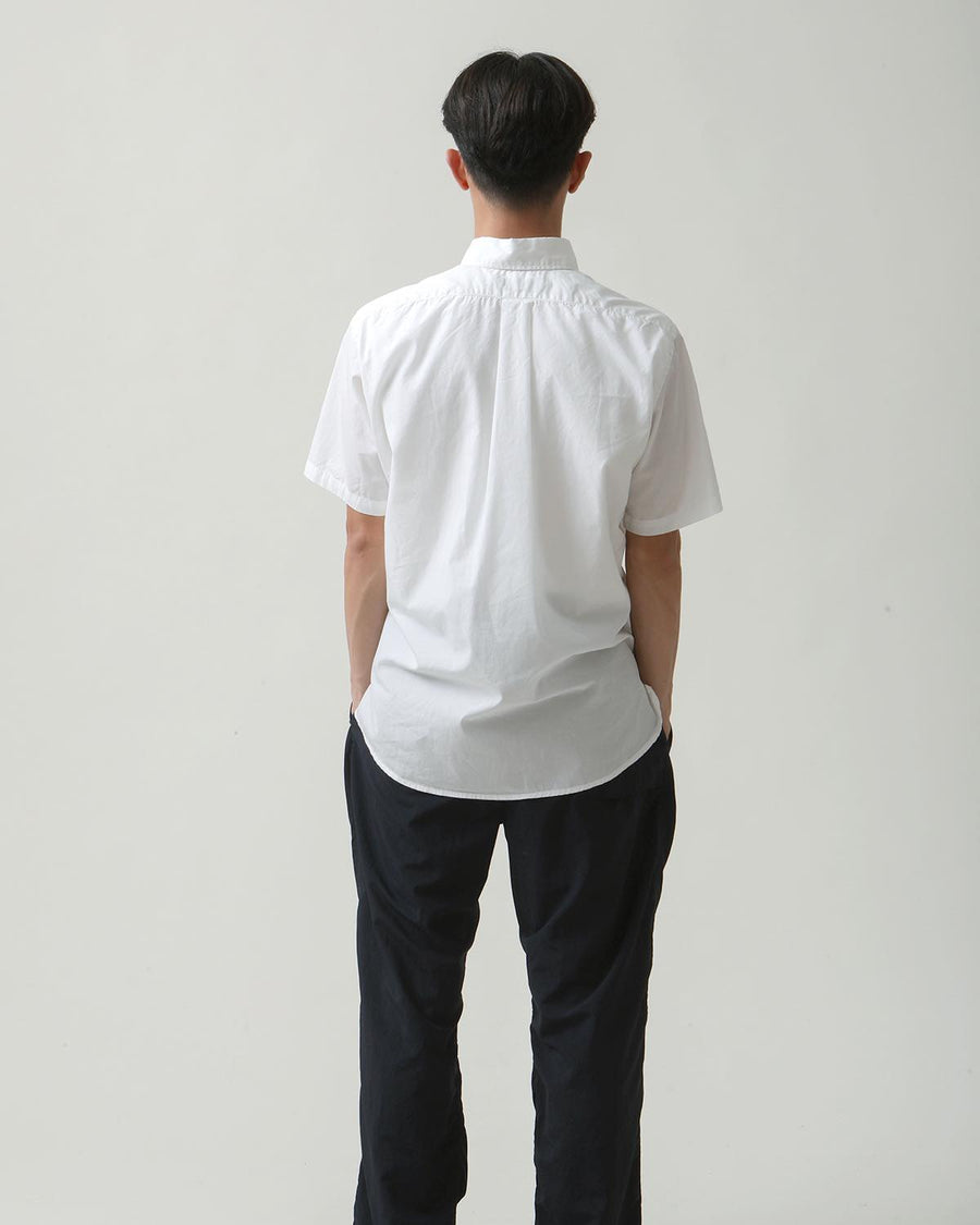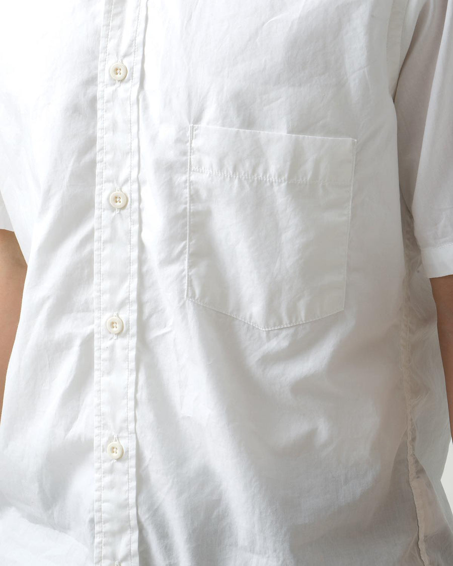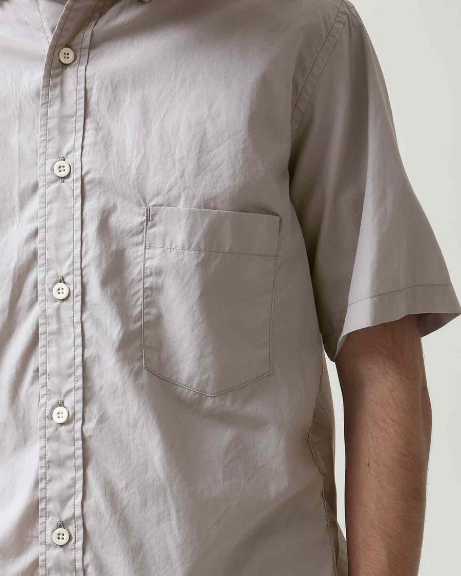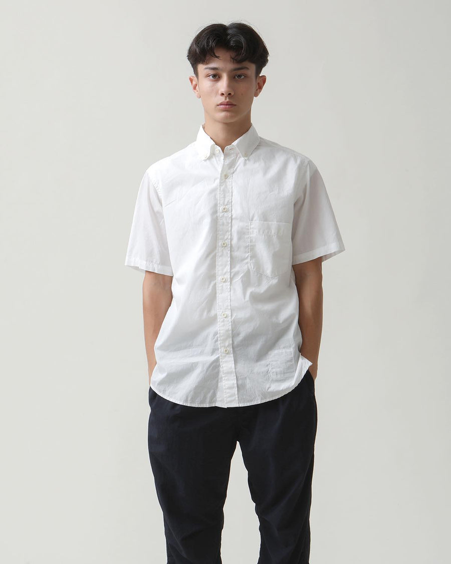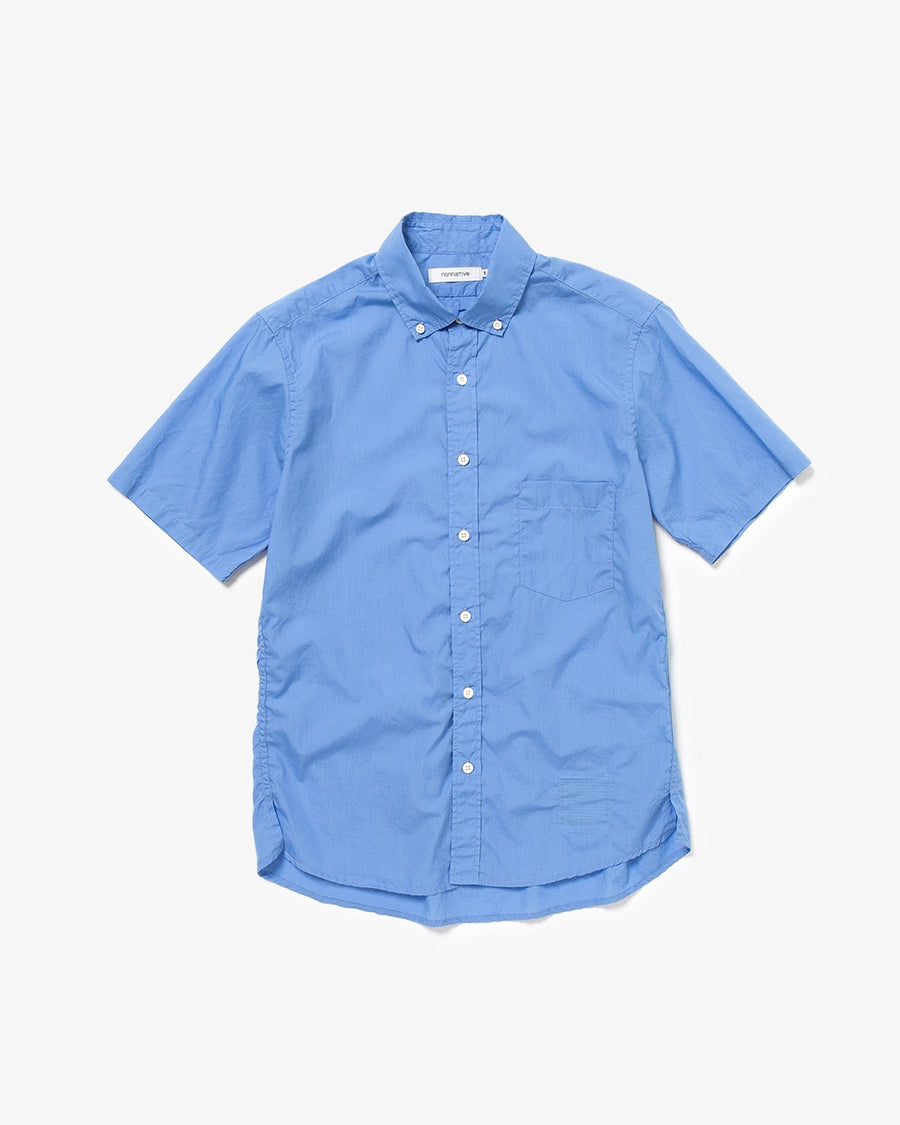 From nonnative SS25, a short-sleeve button-down shirt in dry-touch typewriter fabric with a refined, smaller collar.