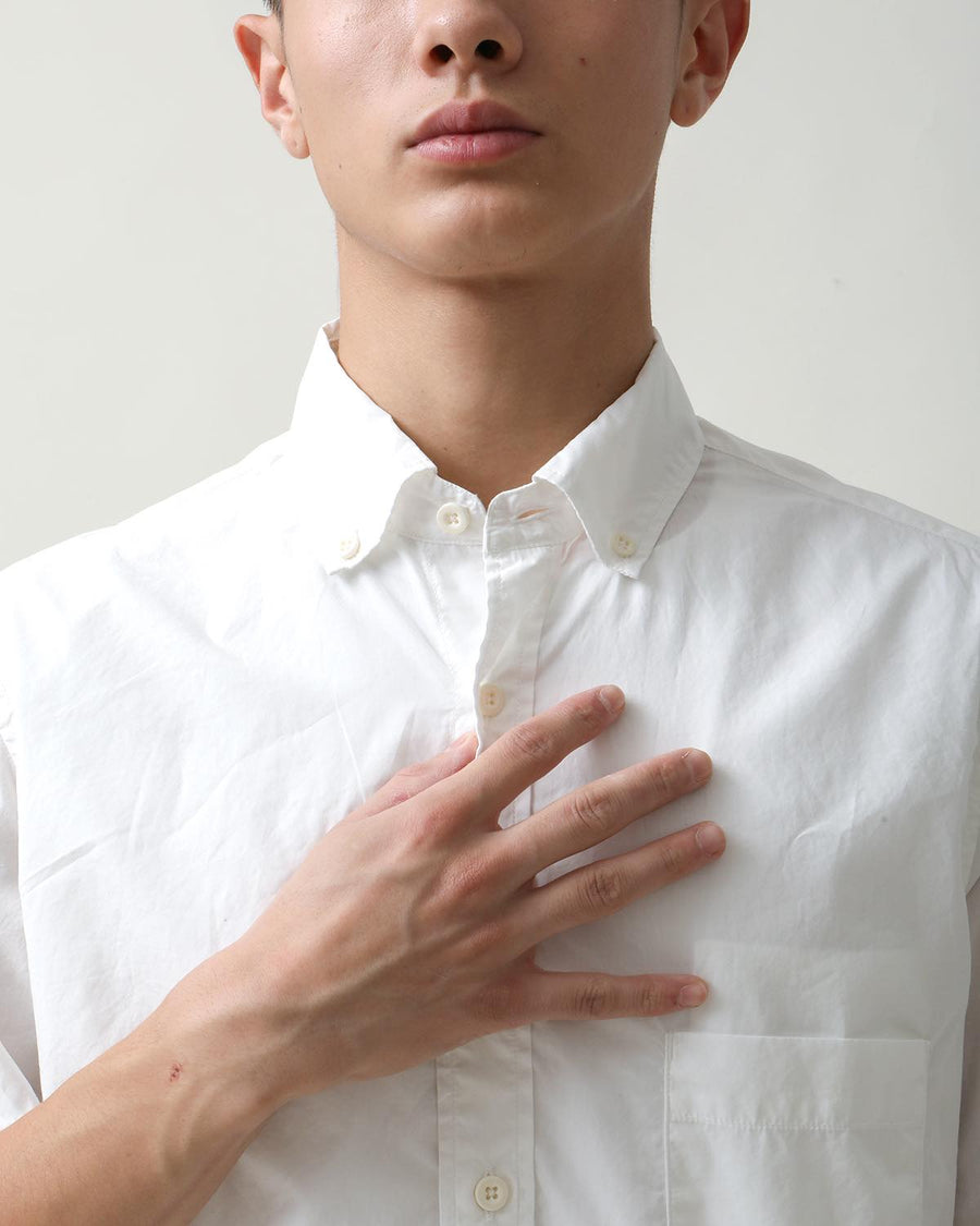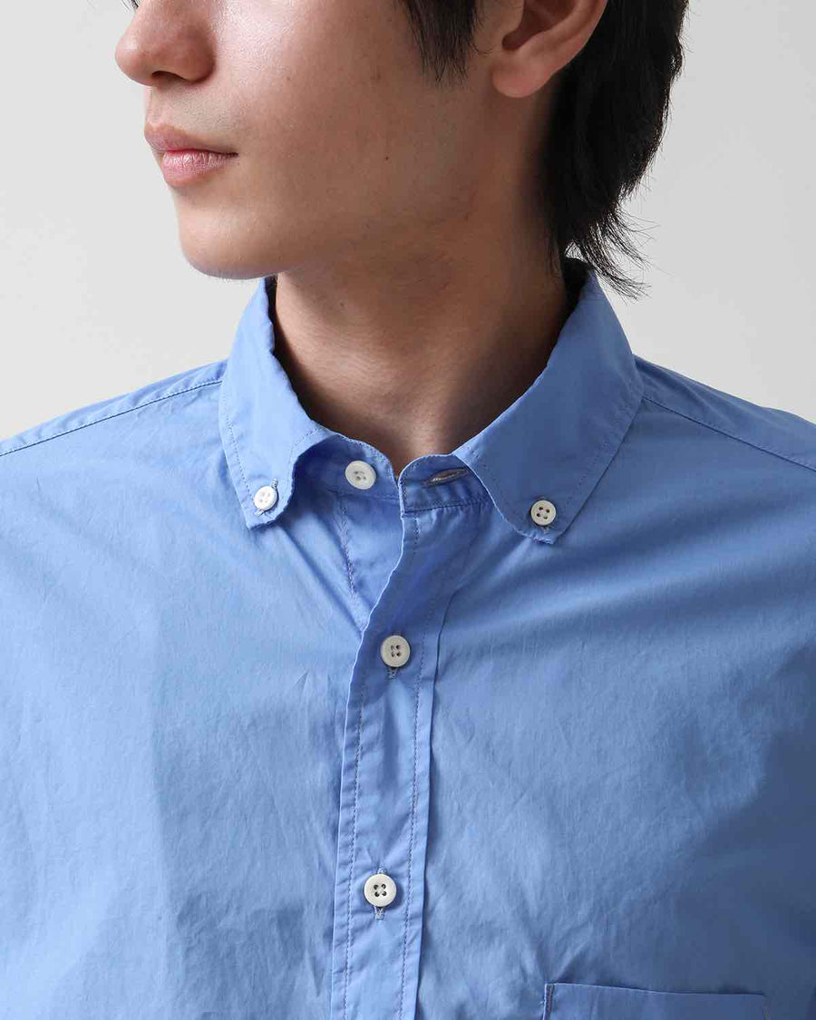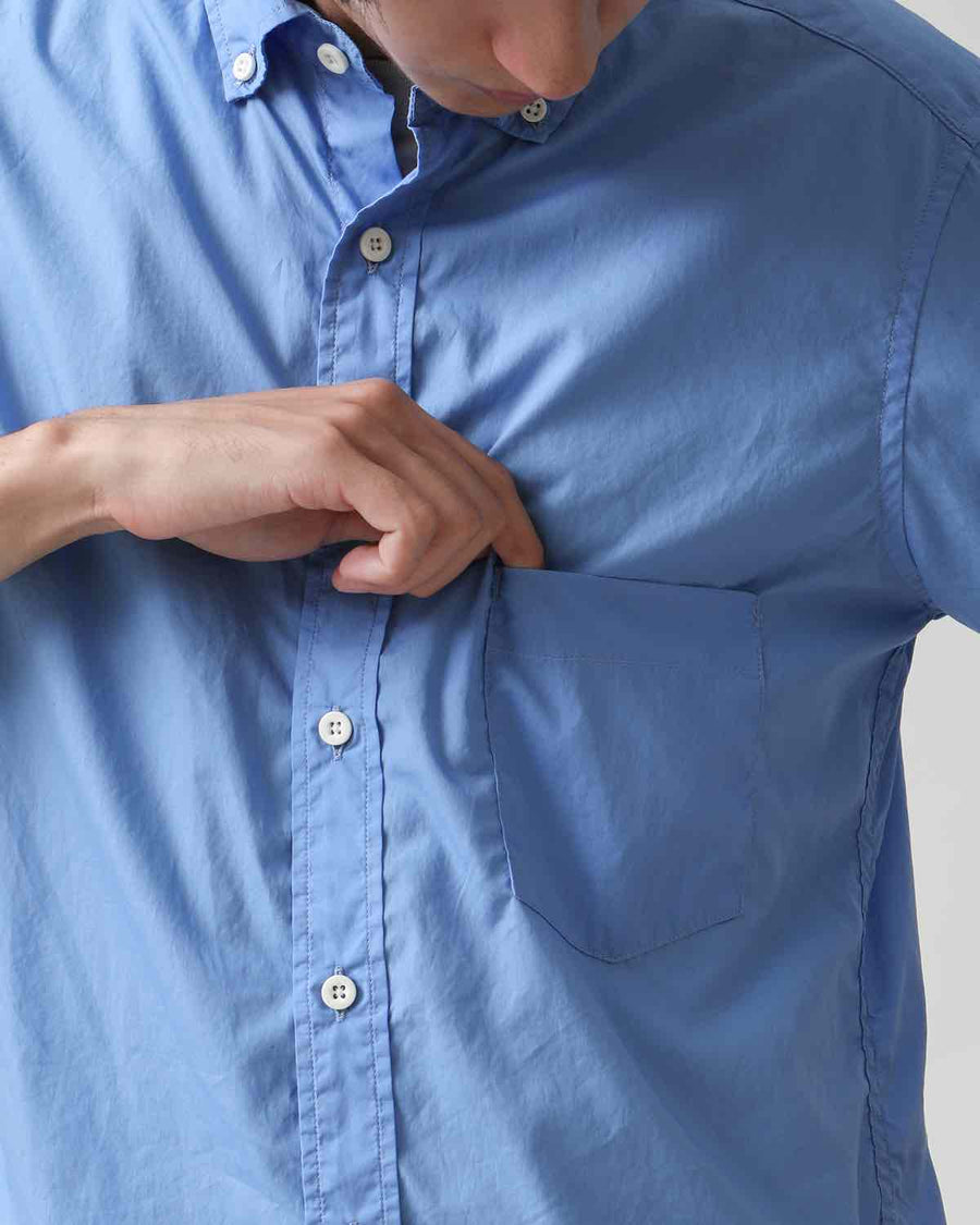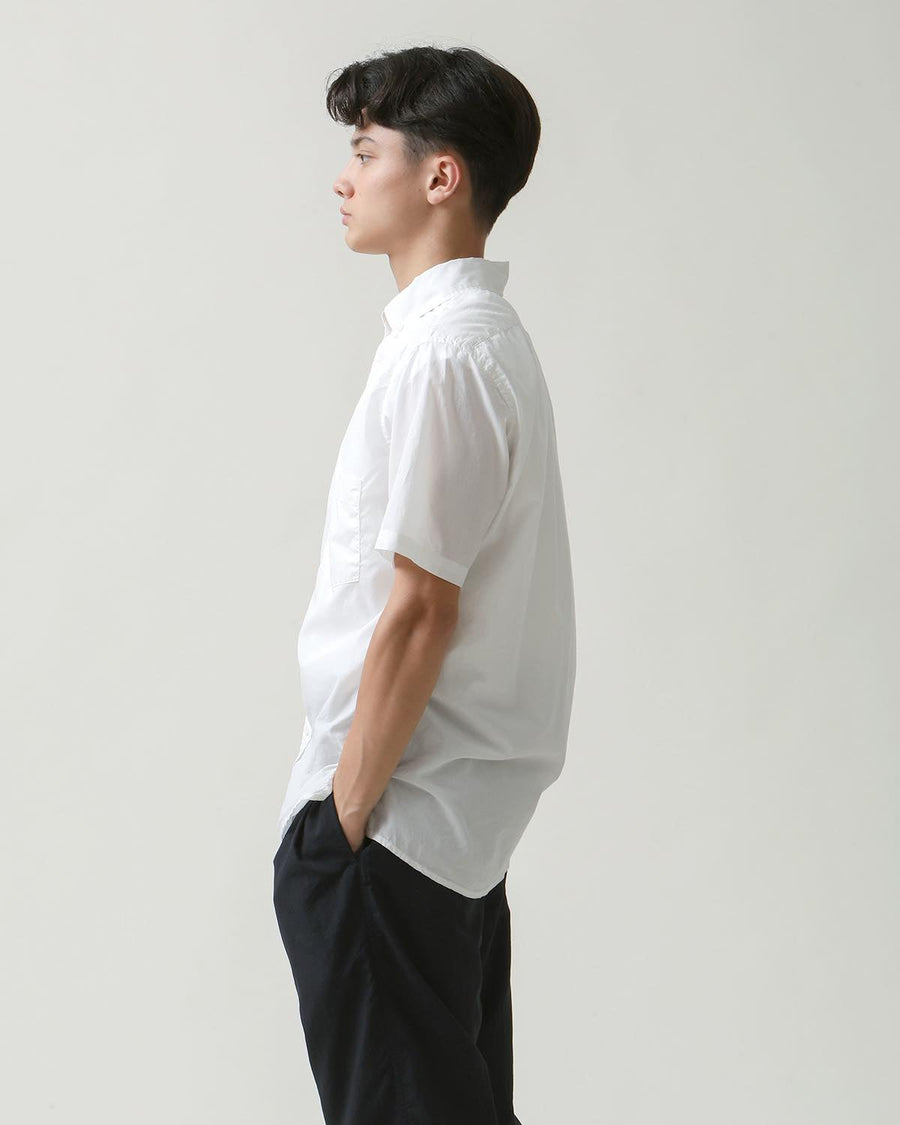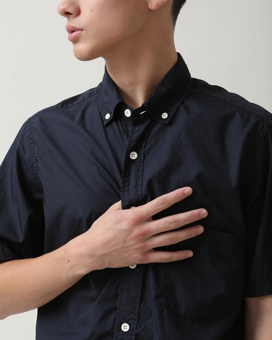 From nonnative SS25, a short-sleeve button-down shirt in dry-touch typewriter fabric with a refined, smaller collar.