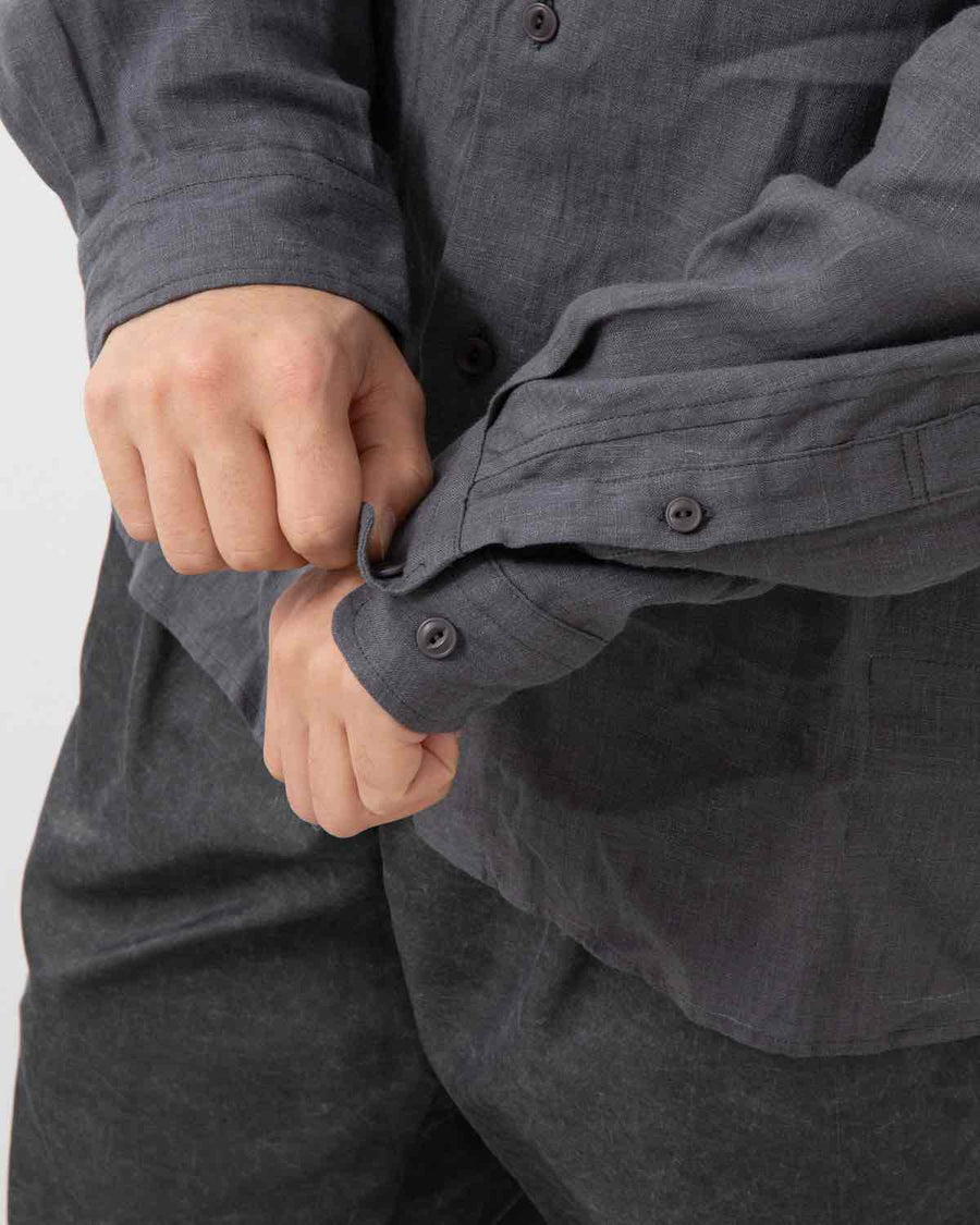 Stand Collar Long Sleeve Shirt – Spring & Summer 2026 – Lightweight linen canvas shirt with dual chest pockets and breathable comfort.