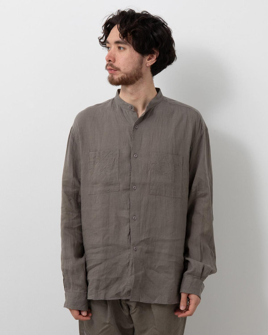 nonnative OFFICER STAND COLLAR L/S SHIRT LINEN CANVAS