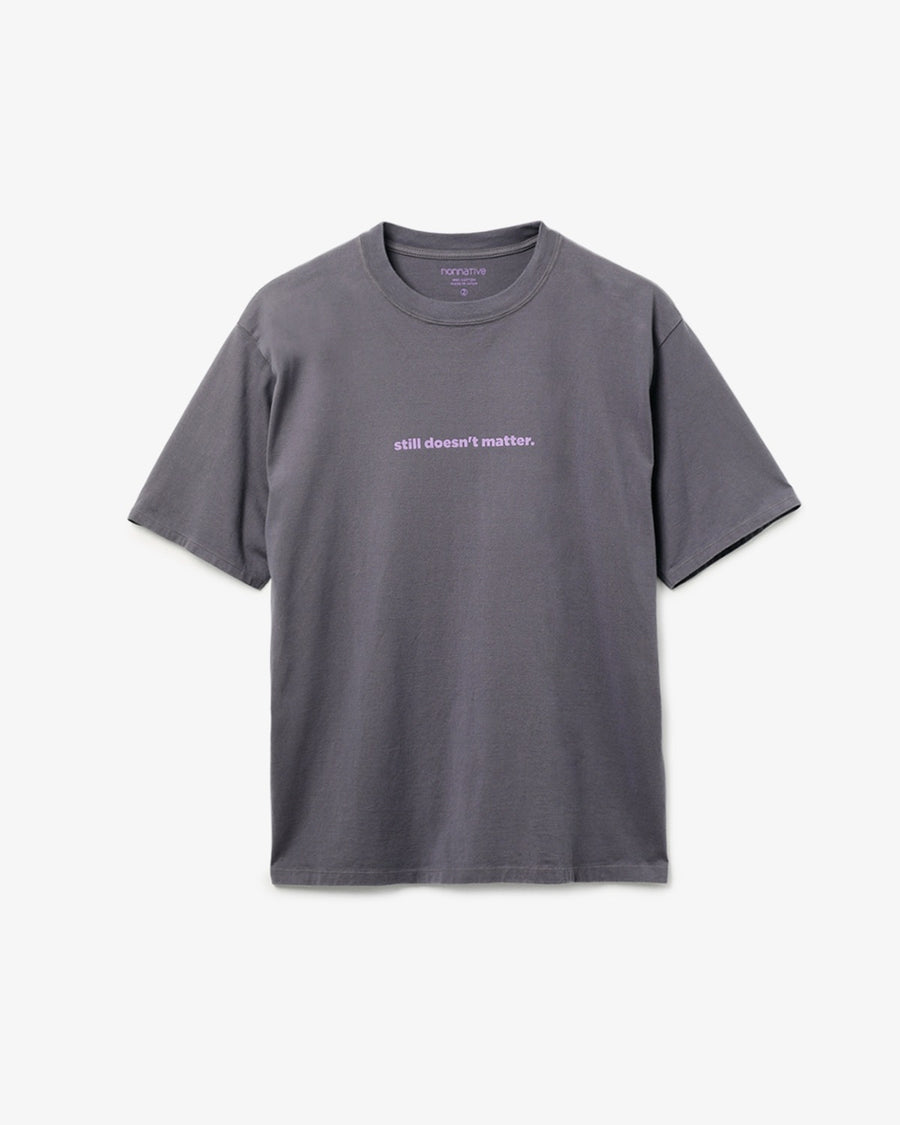 Graphic tee featuring the collection theme “STILL DOESN’T MATTER.”