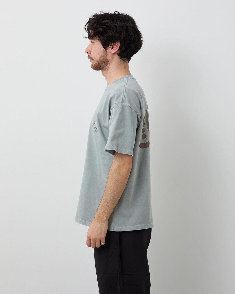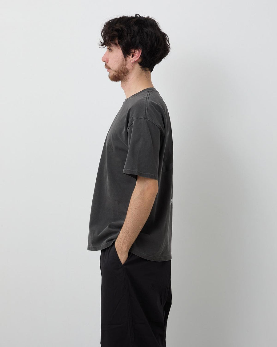A collaboration T-shirt by Rainbow Disco Club, RUSH HOUR, and nonnative, made with a vintage-style Knuu body and pigment dye finish.