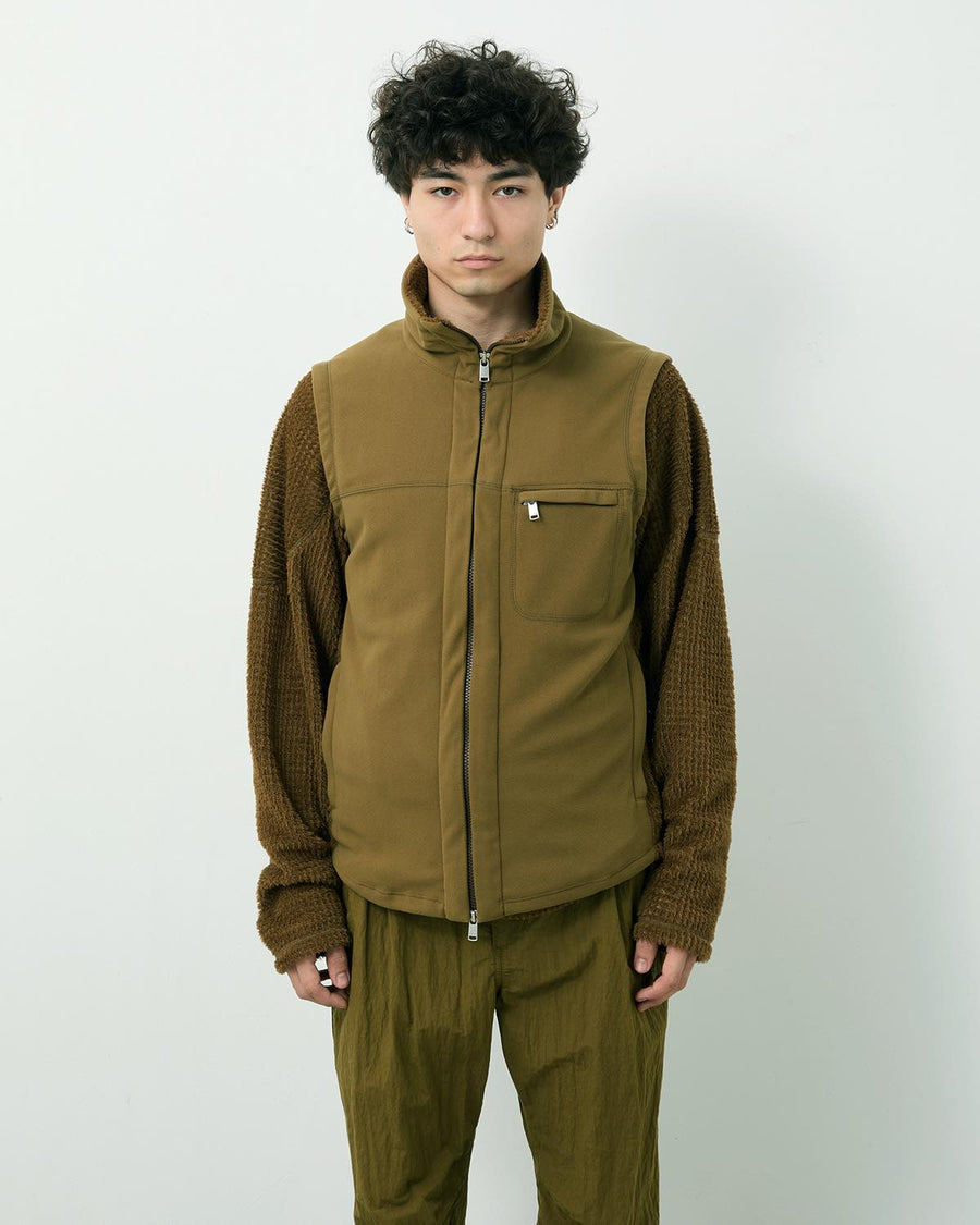 From the AUTUMN & WINTER 2025 COLLECTION, this vest is crafted from wind-resistant POLARTEC® WIND PRO® fleece. Lightweight POLARTEC® Alpha Direct® is used at the sides and collar lining, balancing functionality and design.