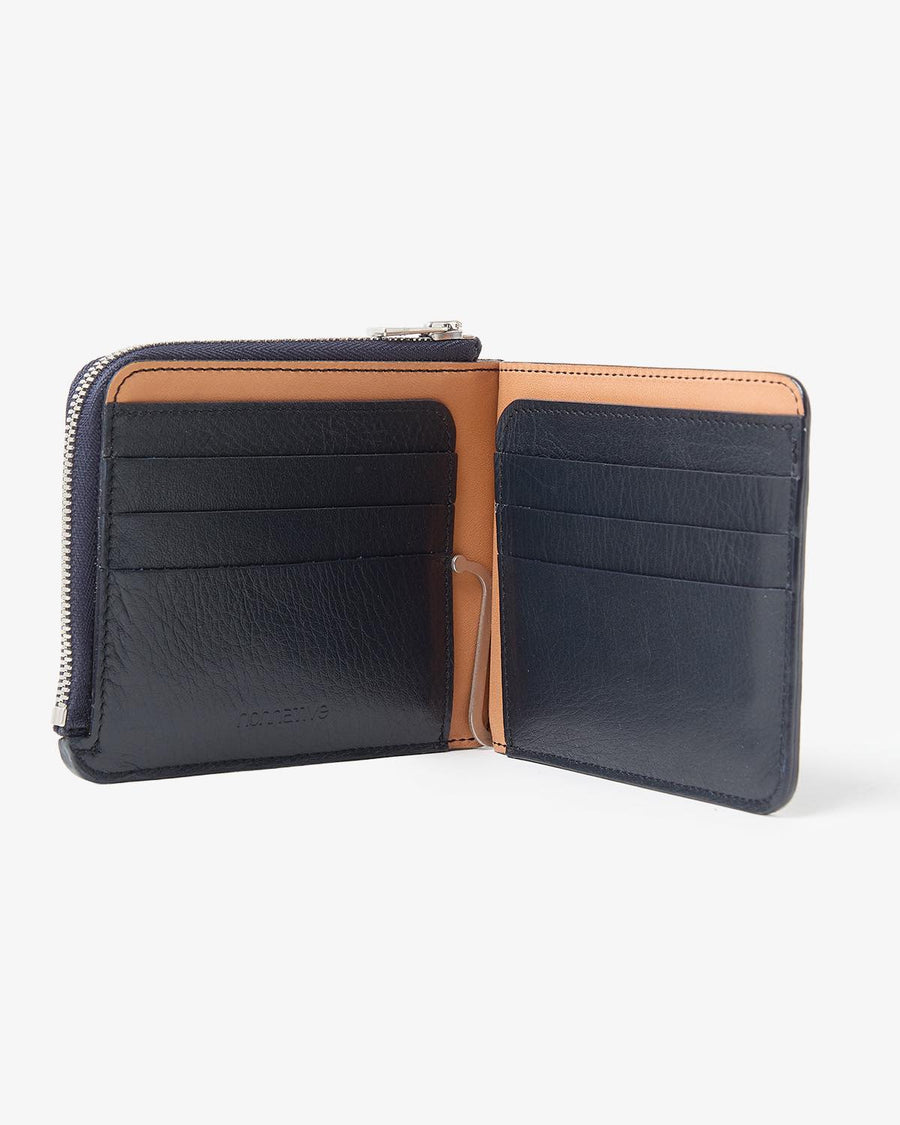 From the AUTUMN & WINTER 2025 COLLECTION, this bifold wallet is crafted from polished cowhide leather. Its slim profile makes it versatile for everyday use.