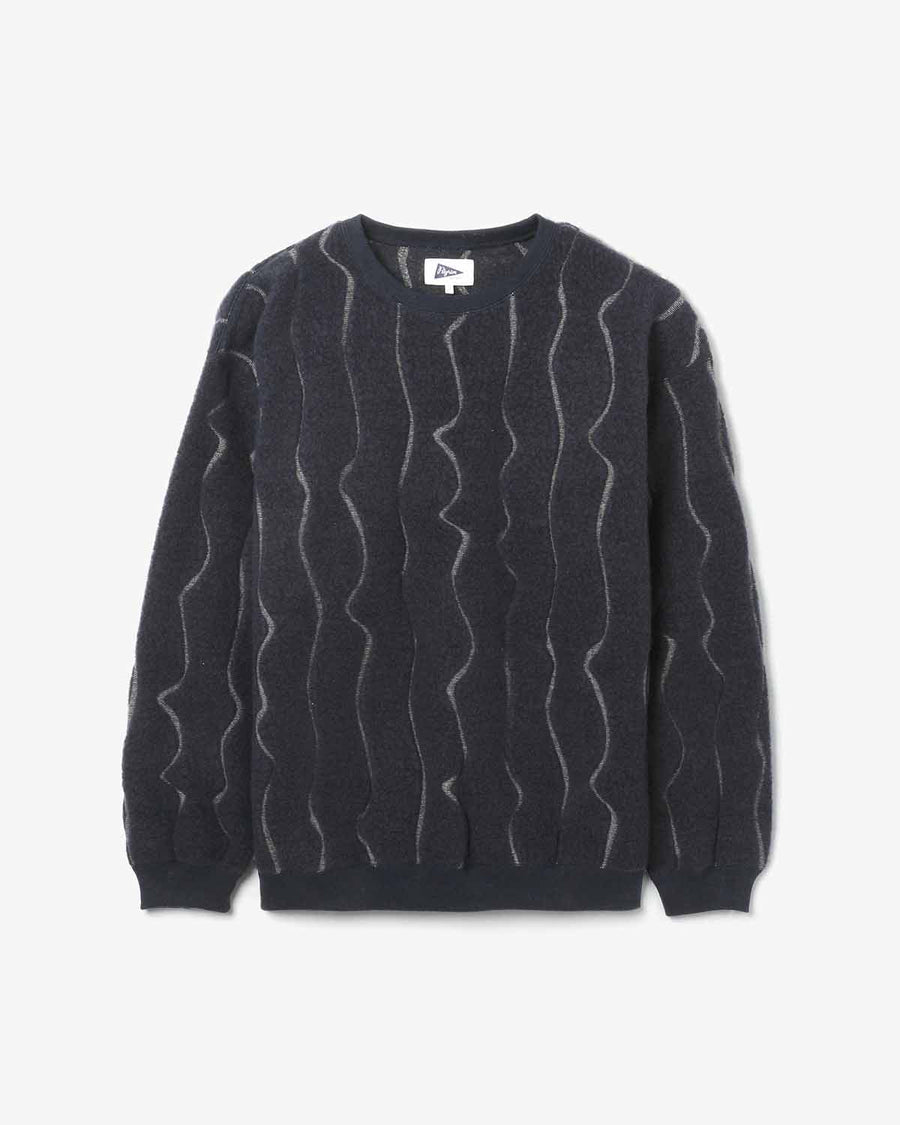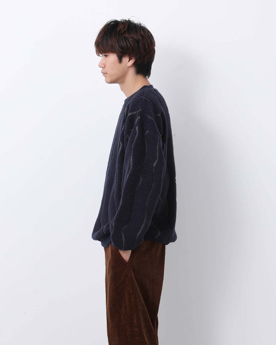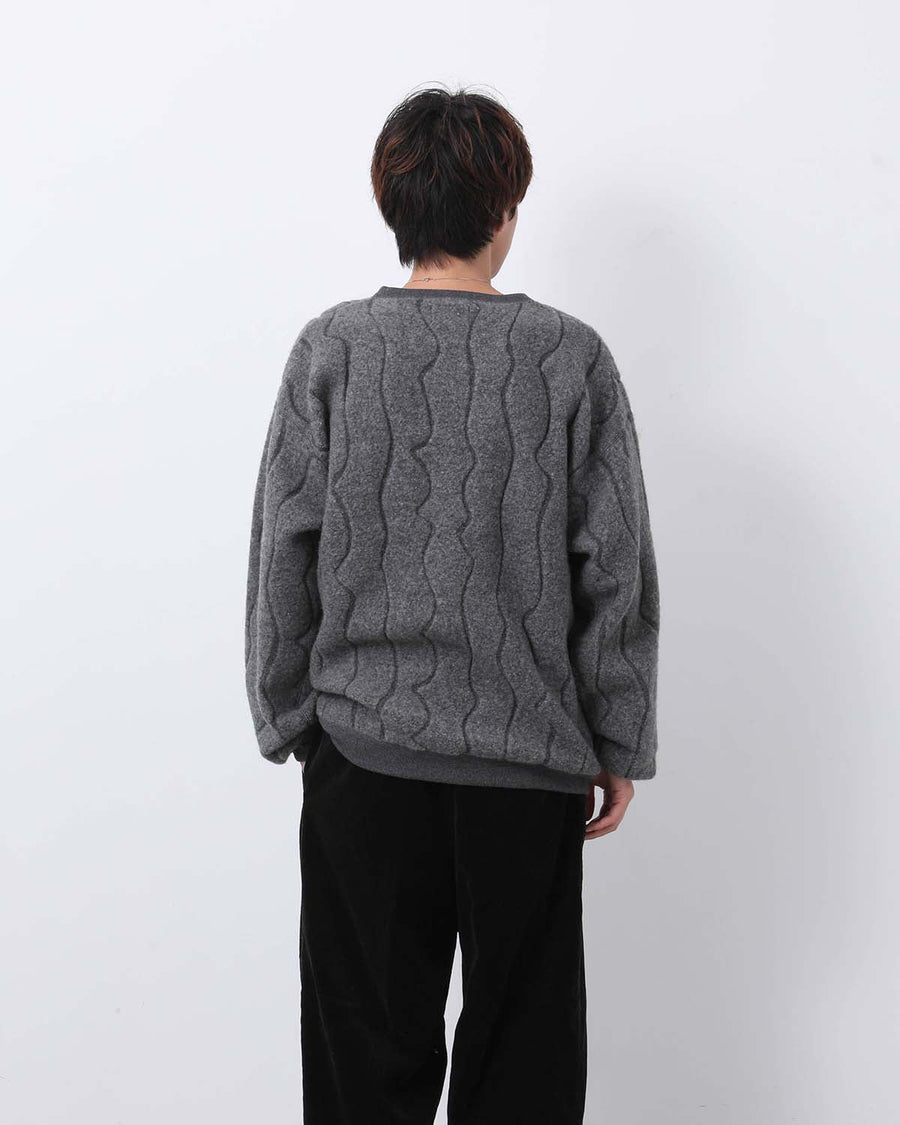 Crew-neck top in Bishu wool boa jacquard, combining soft warmth, subtle artist-inspired texture, and a relaxed, cozy fit.