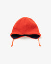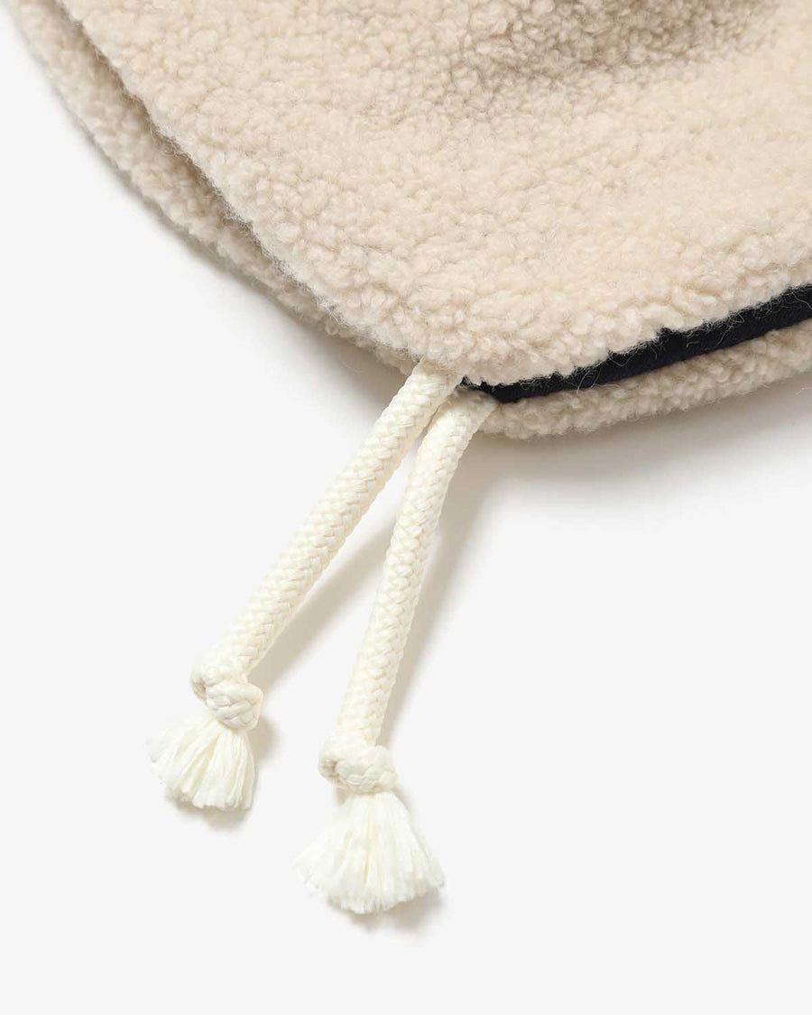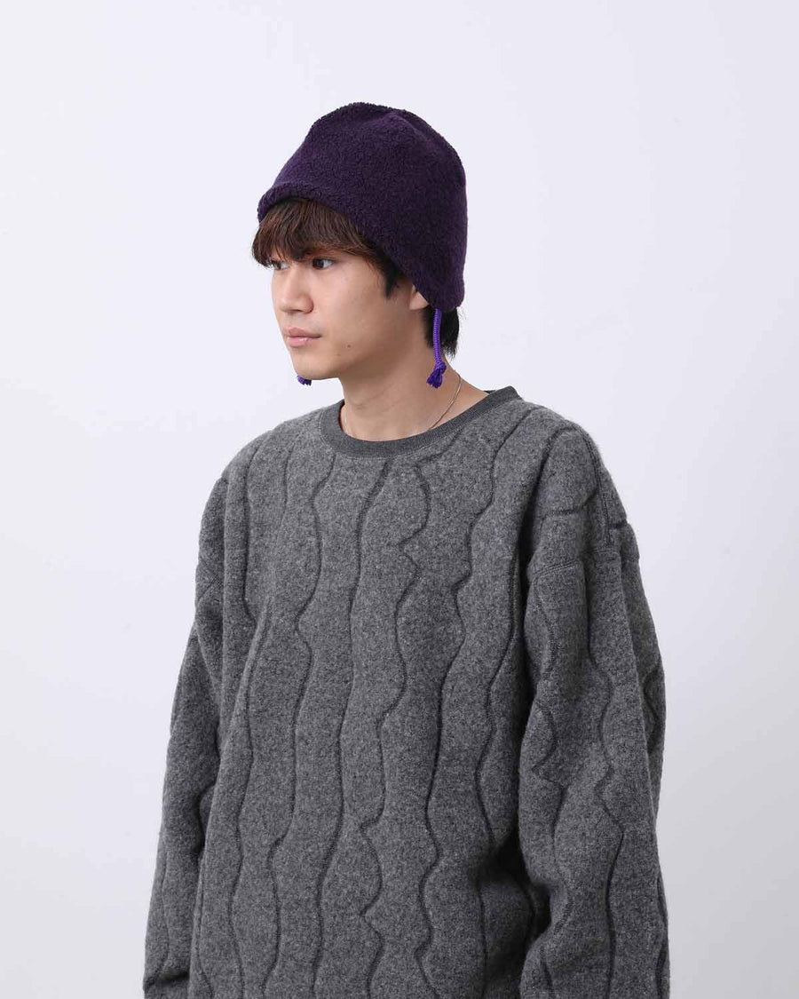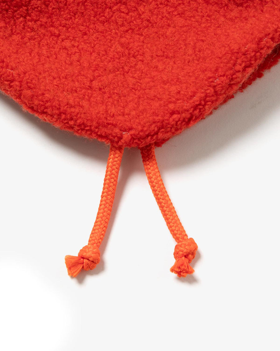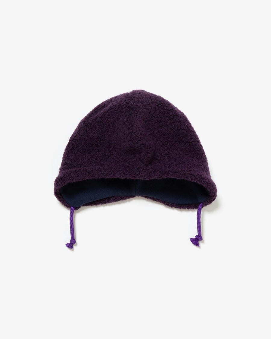 A simple earflap cap made from warm, voluminous fleece boa, perfect for casual outfits.