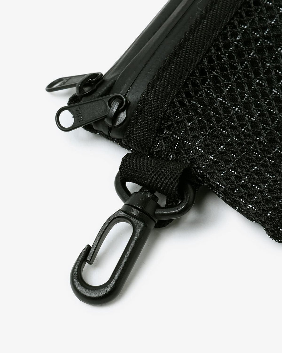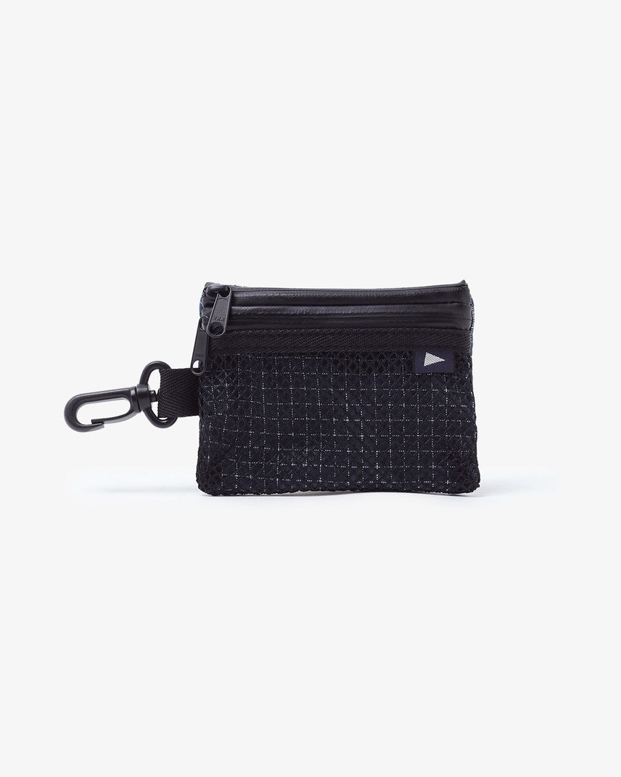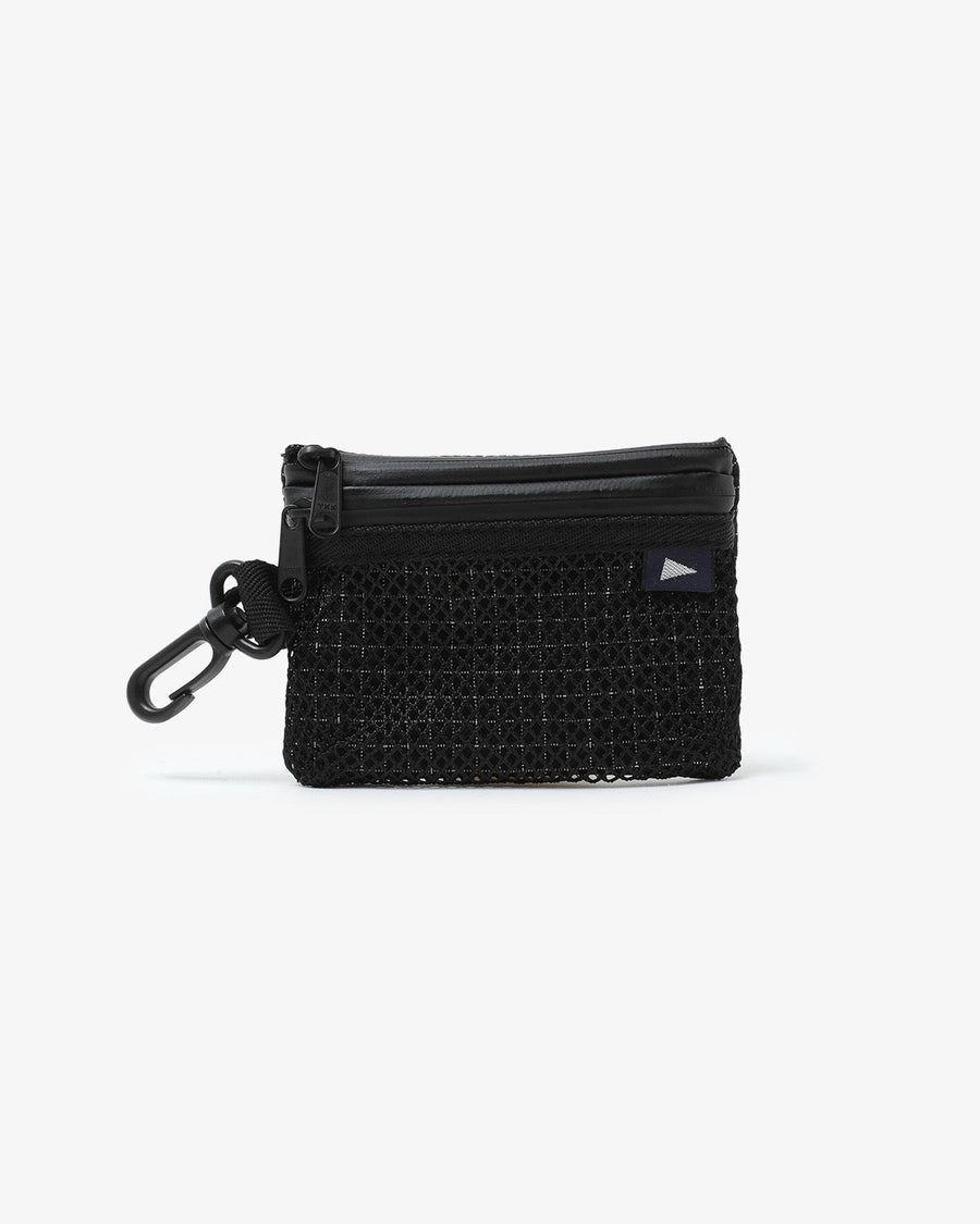 Minimal design wallet in nylon-polyethylene with a front mesh pocket. Hook included for attachment to bags or sacoches.