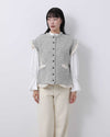 A felted wool knit jacket featuring a unique detail where the lining flares outward like frills due to the differential shrinkage between outer and inner fabrics.