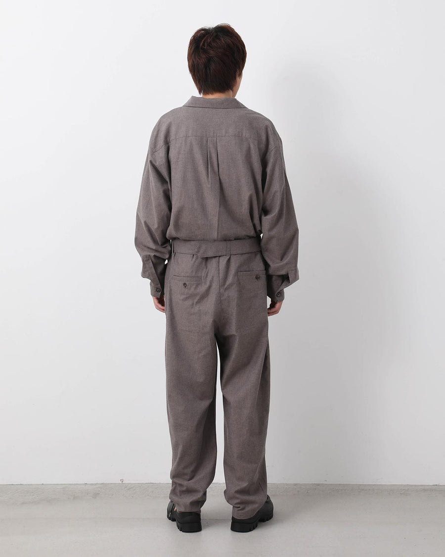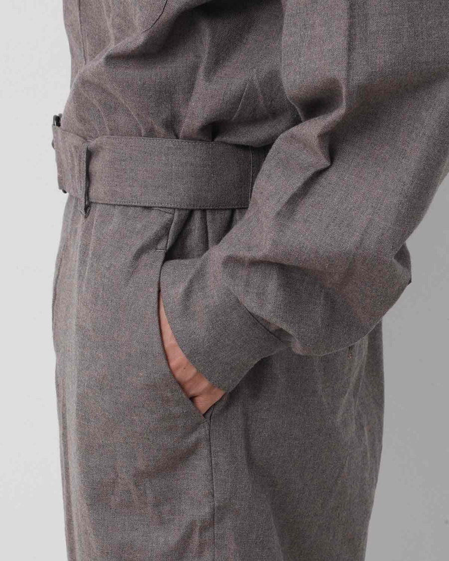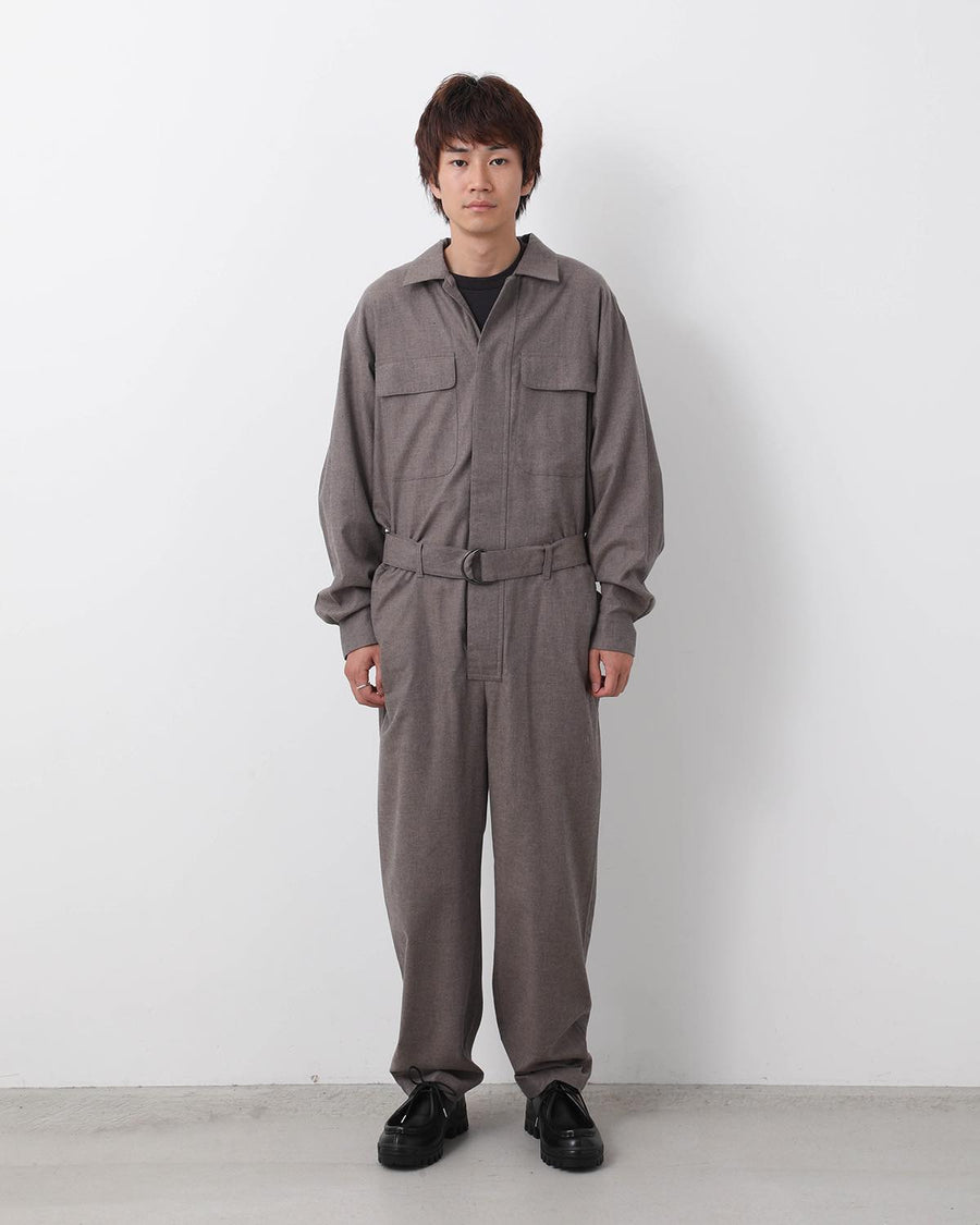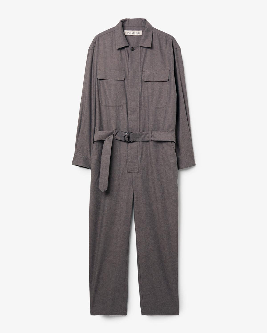 JUMP SUIT C made from lightly brushed cotton twill by Spain’s SIDOGRAS, with a relaxed waist and adjustable belt.