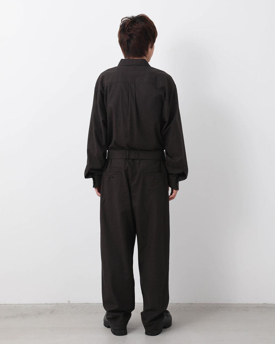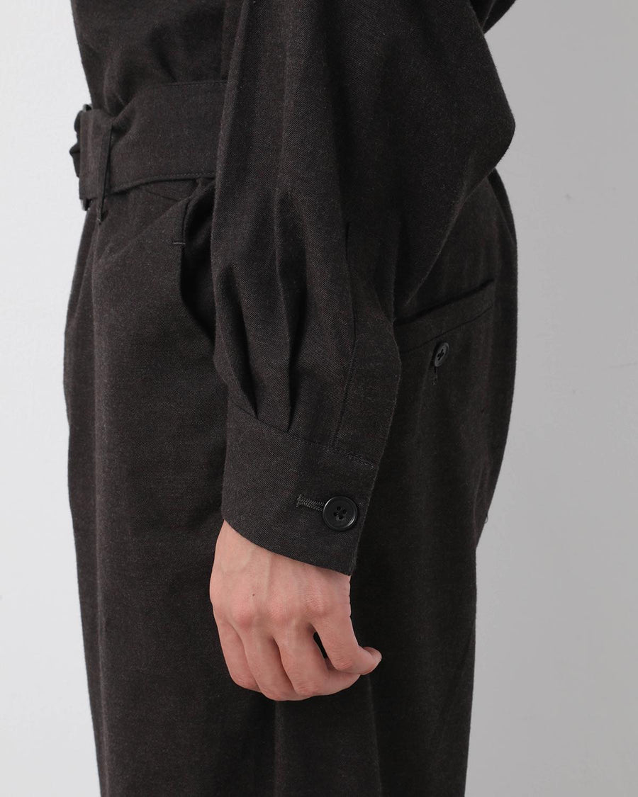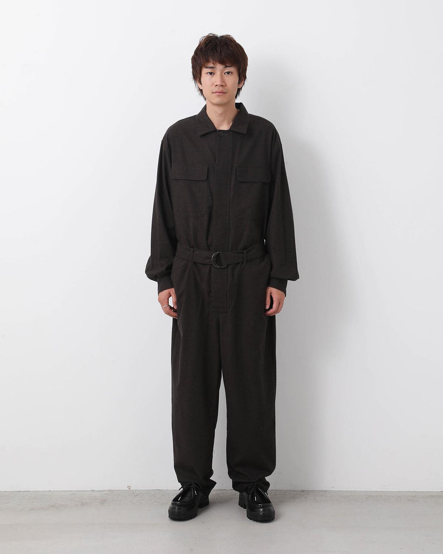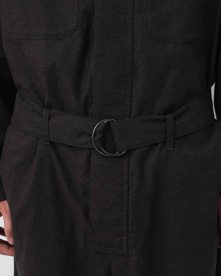 JUMP SUIT C made from lightly brushed cotton twill by Spain’s SIDOGRAS, with a relaxed waist and adjustable belt.