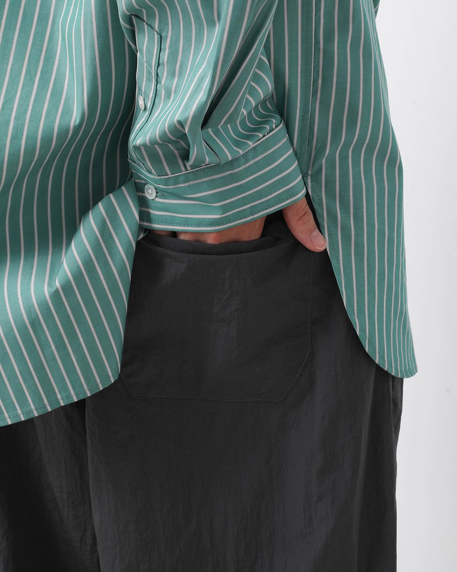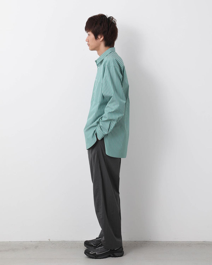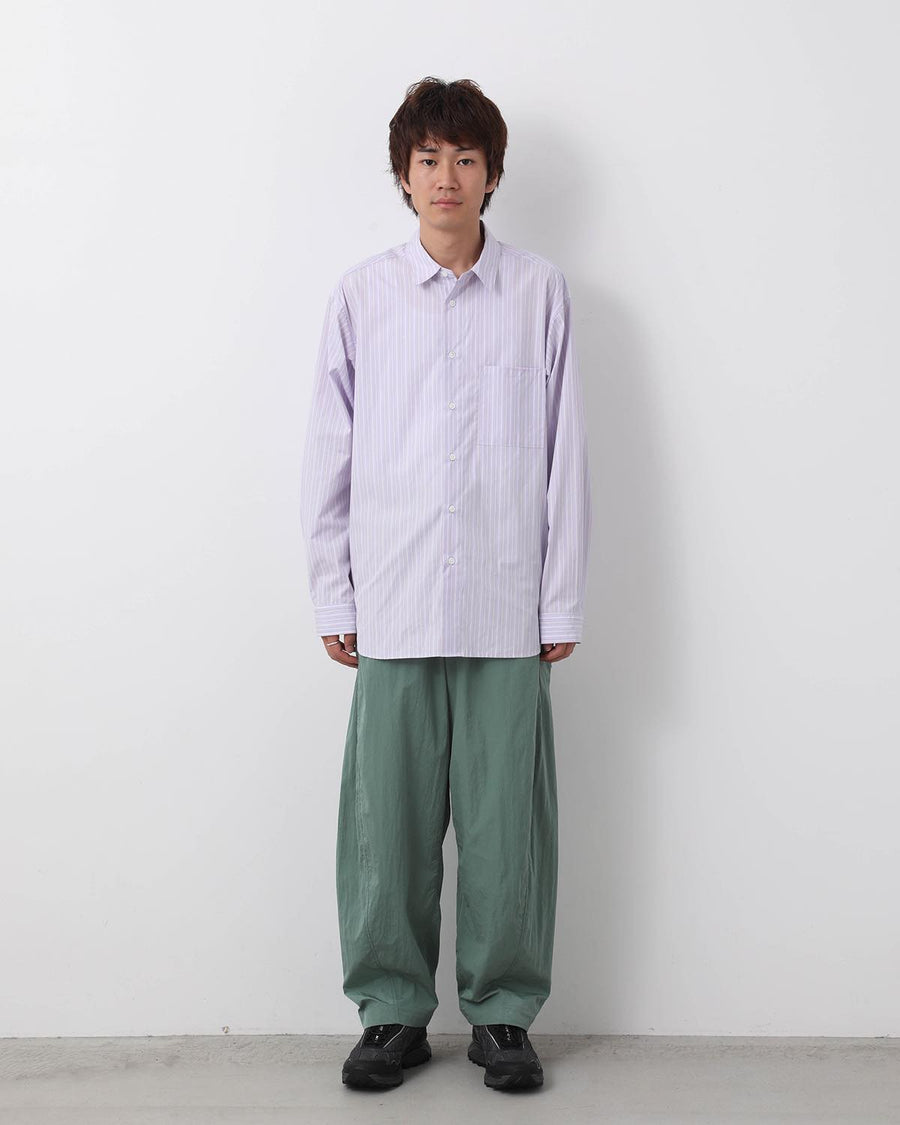 JUDO PANTS B are made from breathable, PFC-free water-repellent fabric by Italy's LIMONTA, using recycled polyester with a natural wrinkled texture.