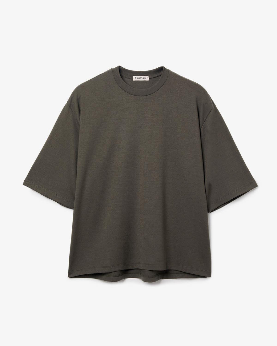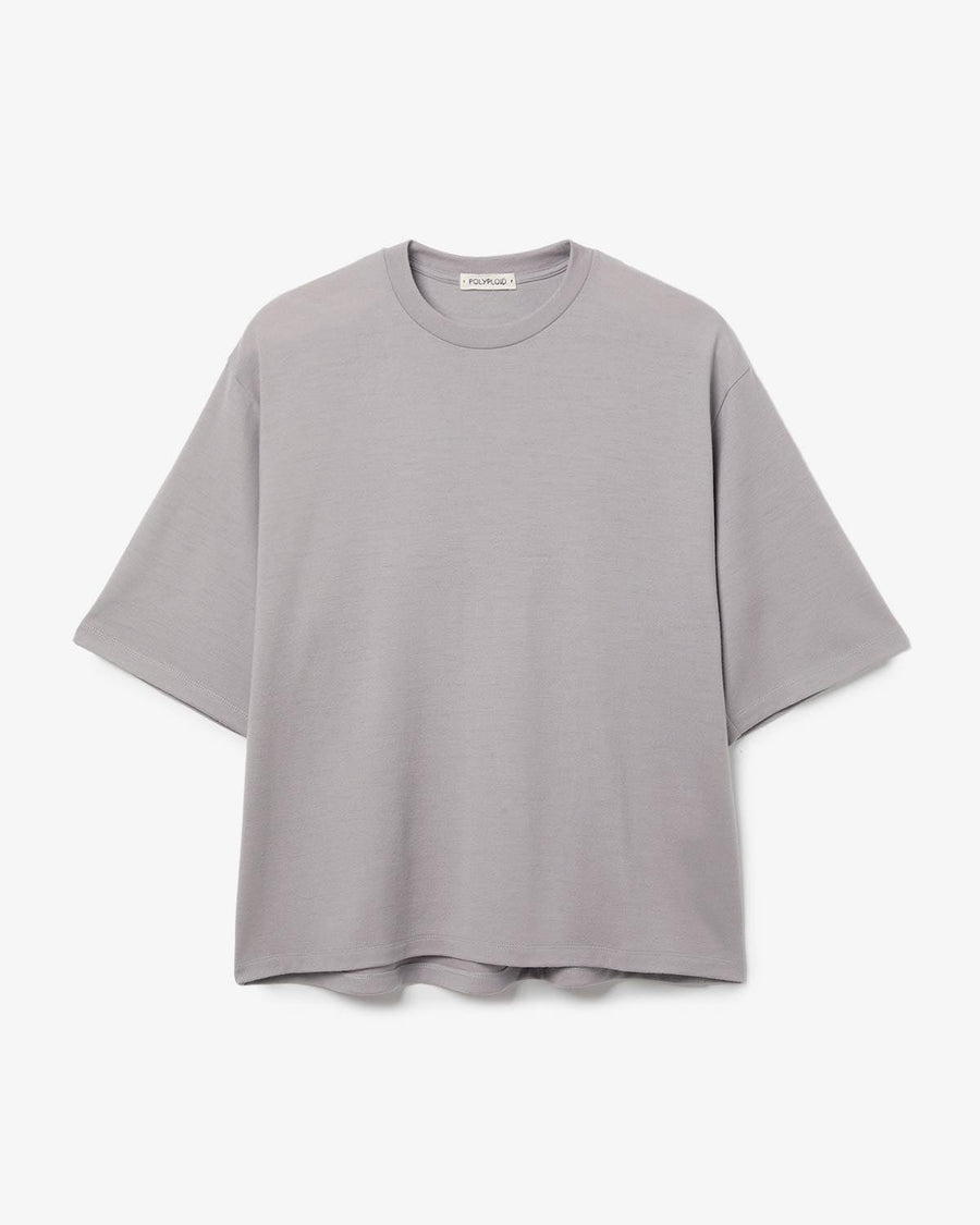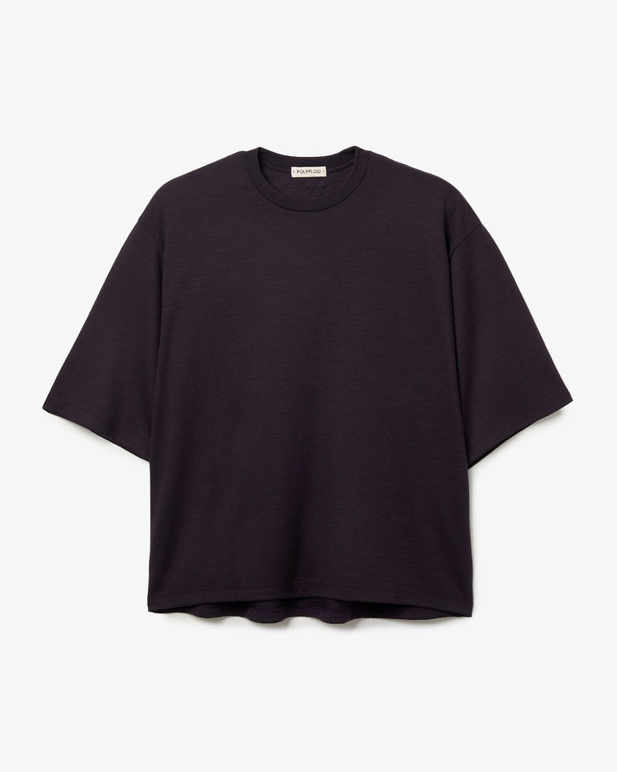 A short-sleeve T-shirt made from washable merino wool jersey with a beautiful drape, featuring POLYPLOID’s signature oversized silhouette.