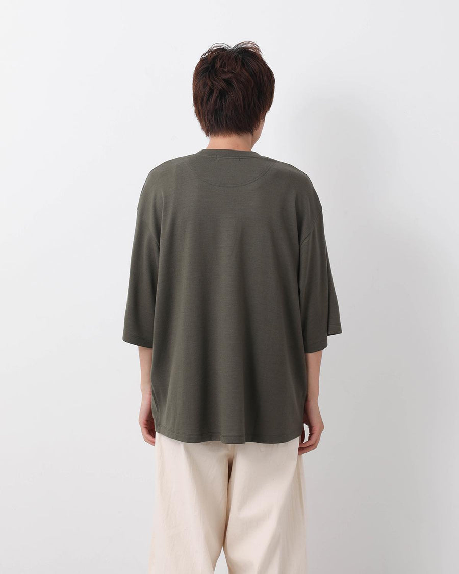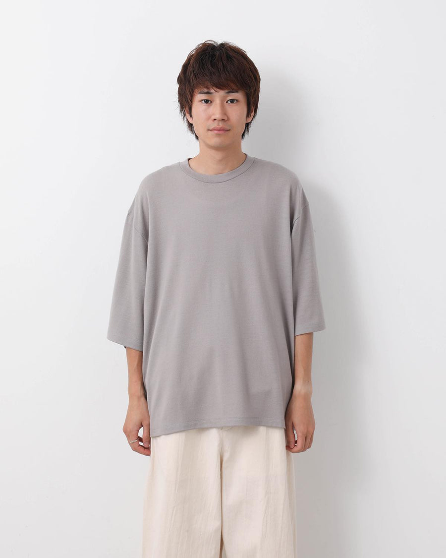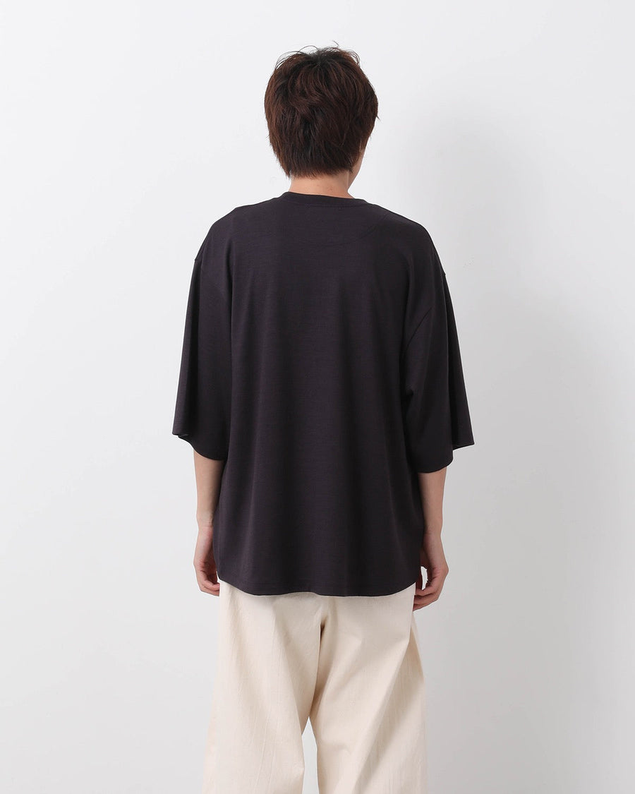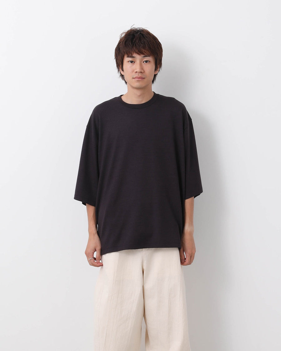 A short-sleeve T-shirt made from washable merino wool jersey with a beautiful drape, featuring POLYPLOID’s signature oversized silhouette.