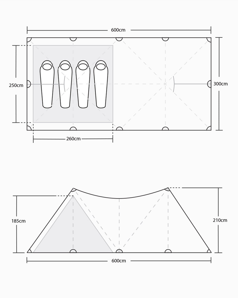 Compact and lightweight at only 4.5kg, this versatile and spacious shelter can extend your living quarters at camp for up to 4 people. Exclusive black color.